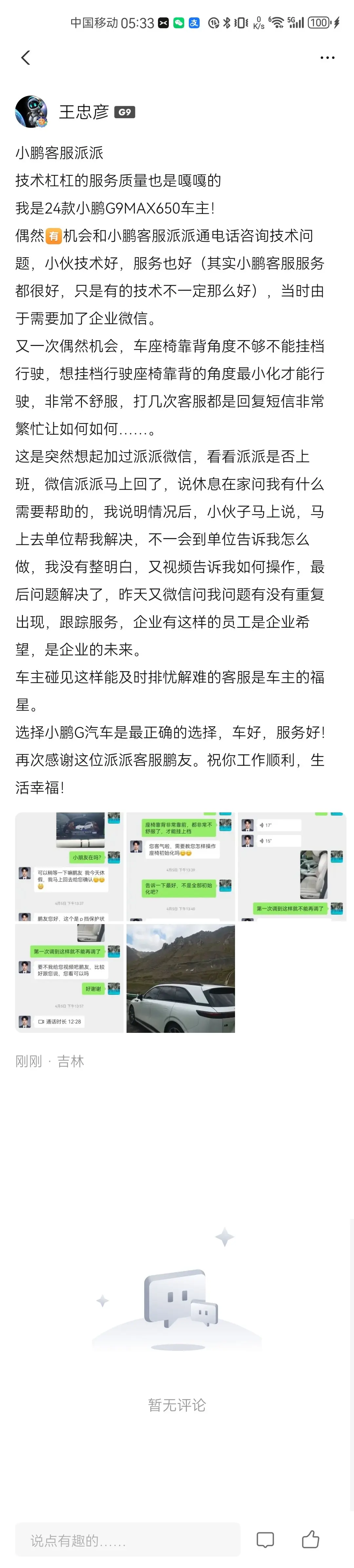 偶然🈶机会和小鹏客服派派通电话咨询技术问题,小伙技术好,服务也好(其实小鹏客服服务都很好,只是有的技术不一定那么好),当时由于需要加了企业微信。