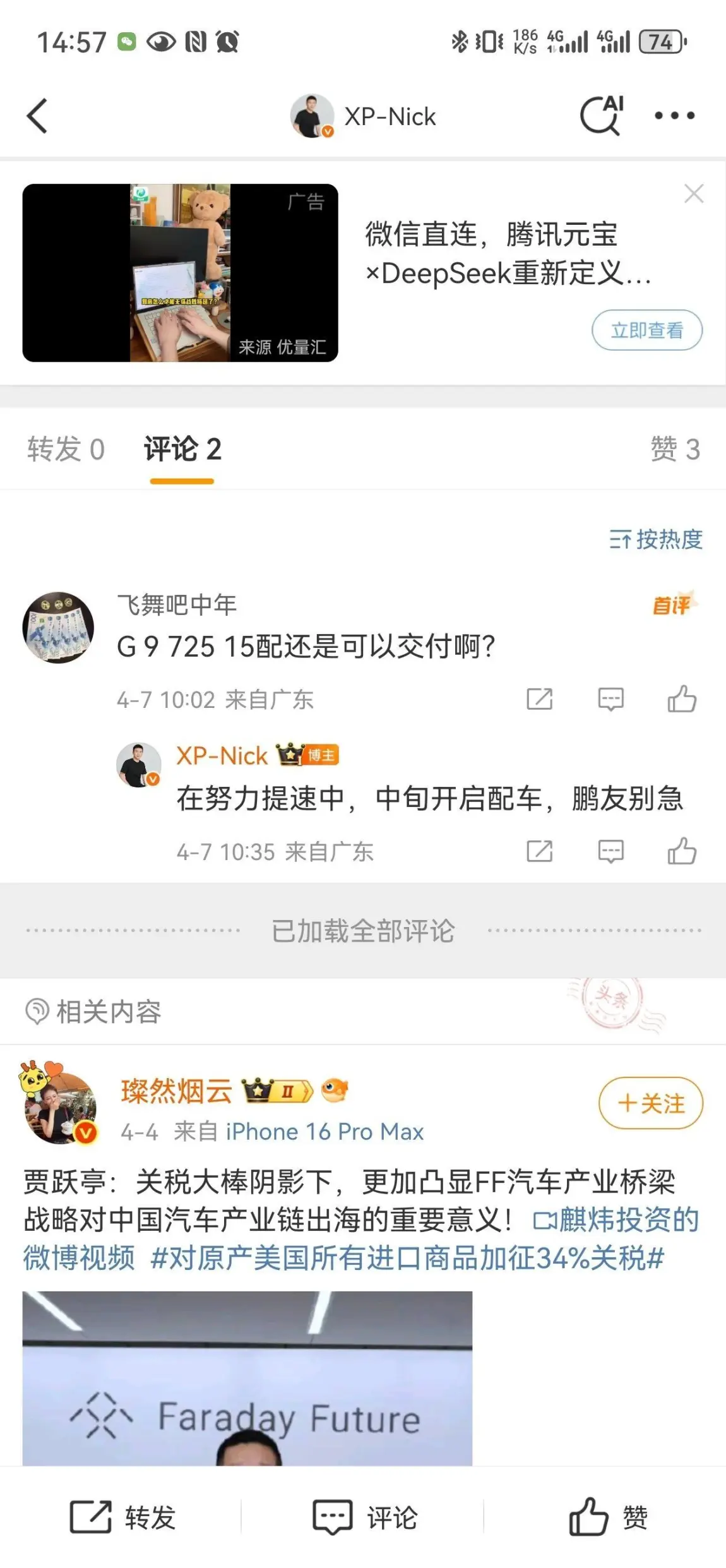 小鹏G9 2025款 725KM,什么时候到手?看下图回复,此时无声胜有声!
