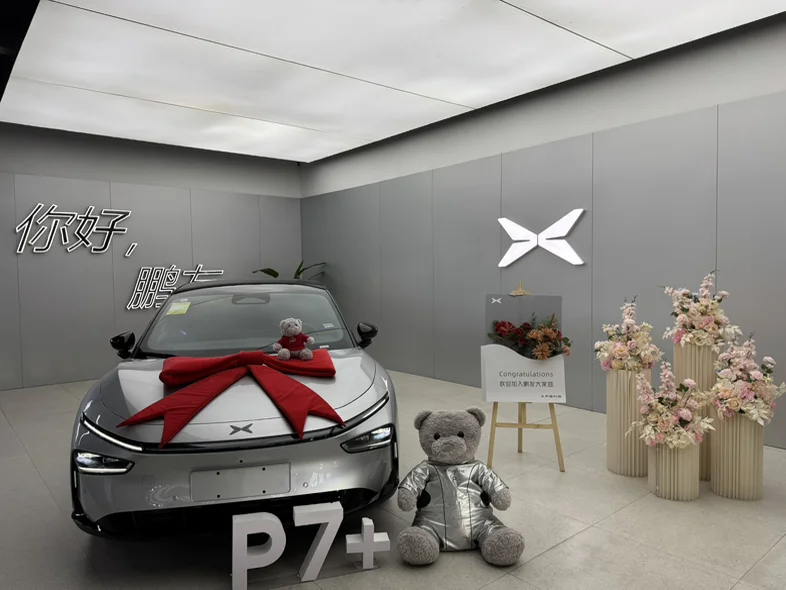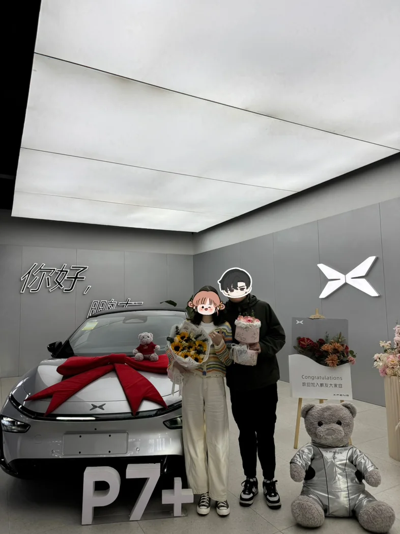 #我的提车作业# 小鹏P7+的溜背造型与短车头设计极具未来感,尾部双层鸭尾和肌肉感后轮拱让侧后方视角成为亮点,无框车门与20英寸轮毂进一步强化了运动气息。内饰采用分层中控台和仿皮材质包裹,星空图案门板与镀铬空调出风口提升了豪华感,后排座椅标配电动调节、通风加热及按摩功能,空间表现远超同级轿跑,头部和腿部余量充足。 交付的体验非常好,由于是清明前一天,车管所只上半天班,最后交付还是迅速办理好了临牌,假期就能出去浪了!点赞👍👍👍