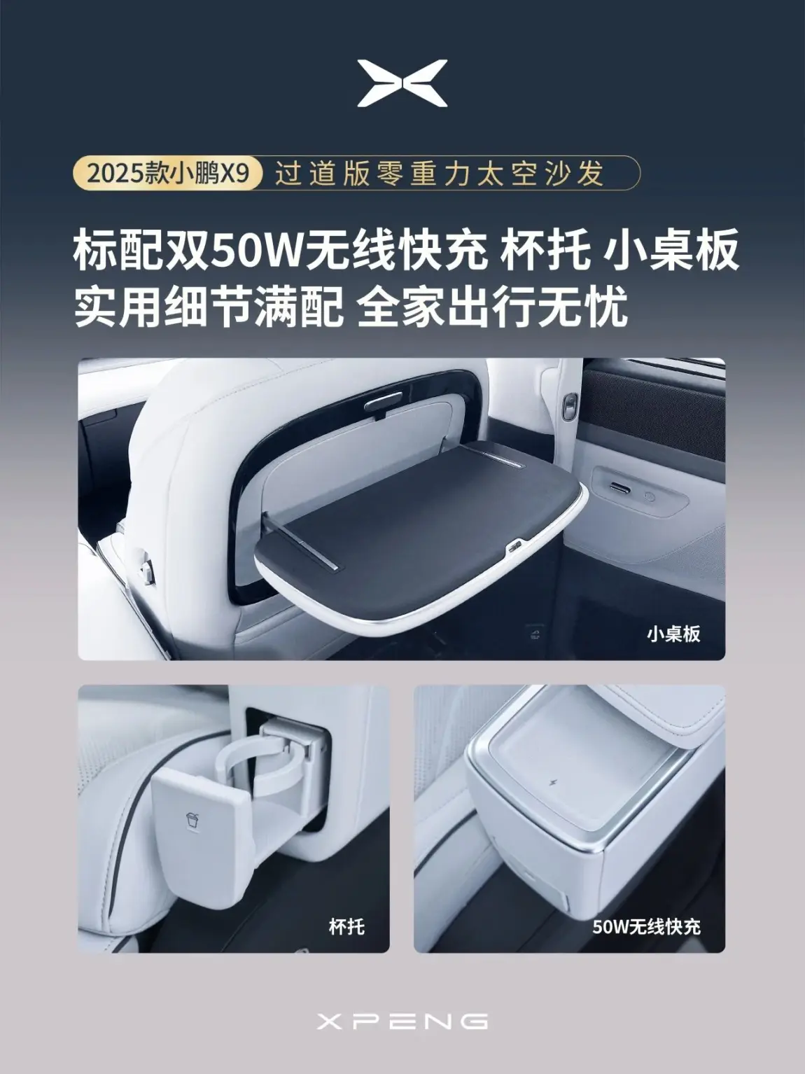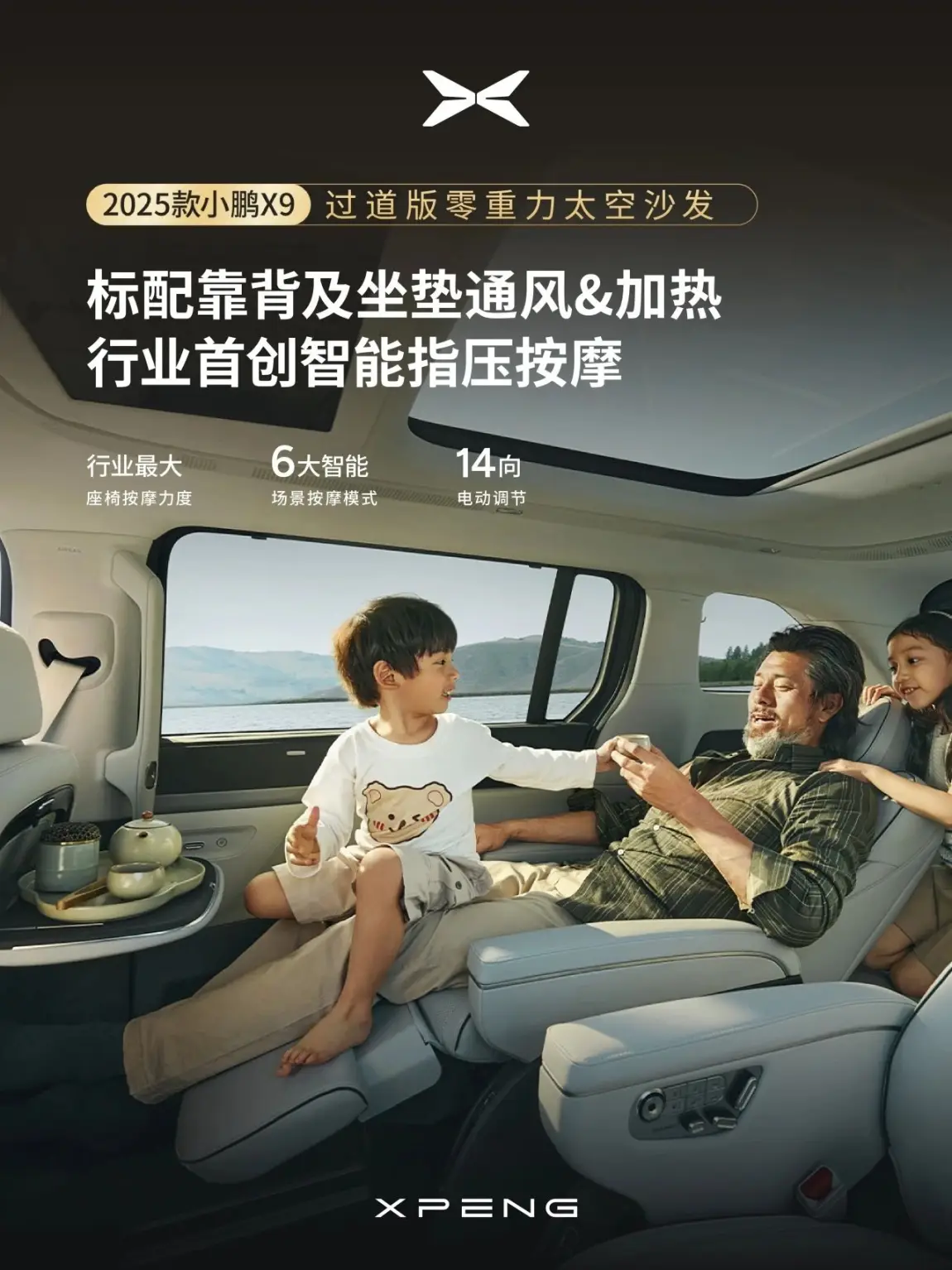 当科技与舒适交织,小鹏X9以科技旗舰之姿,开启了全面升舱的新篇章。作为一款“超舒适AI大七座MPV”,2025款小鹏X9在2024年的基础上,进行了全方位的升级。它不仅延续了小鹏家族的科技基因,更在座椅配置、底盘调校和隔音效果上进行了重大改进。中通道与零重力座椅的完美兼容,让乘坐体验更加灵活与惬意;高标准的底盘调校,提升了车辆的稳定性和舒适性;全方位的隔音优化,营造出宁静的车内空间。此外,21.4英寸的超大屏幕、六音区智能语音识别和五温区自动空调,更是将智能科技与舒适体验完美融合。小鹏X9,不仅是一款车,更是一个移动的智能舒适空间,为每一位鹏友带来前所未有的出行享受。