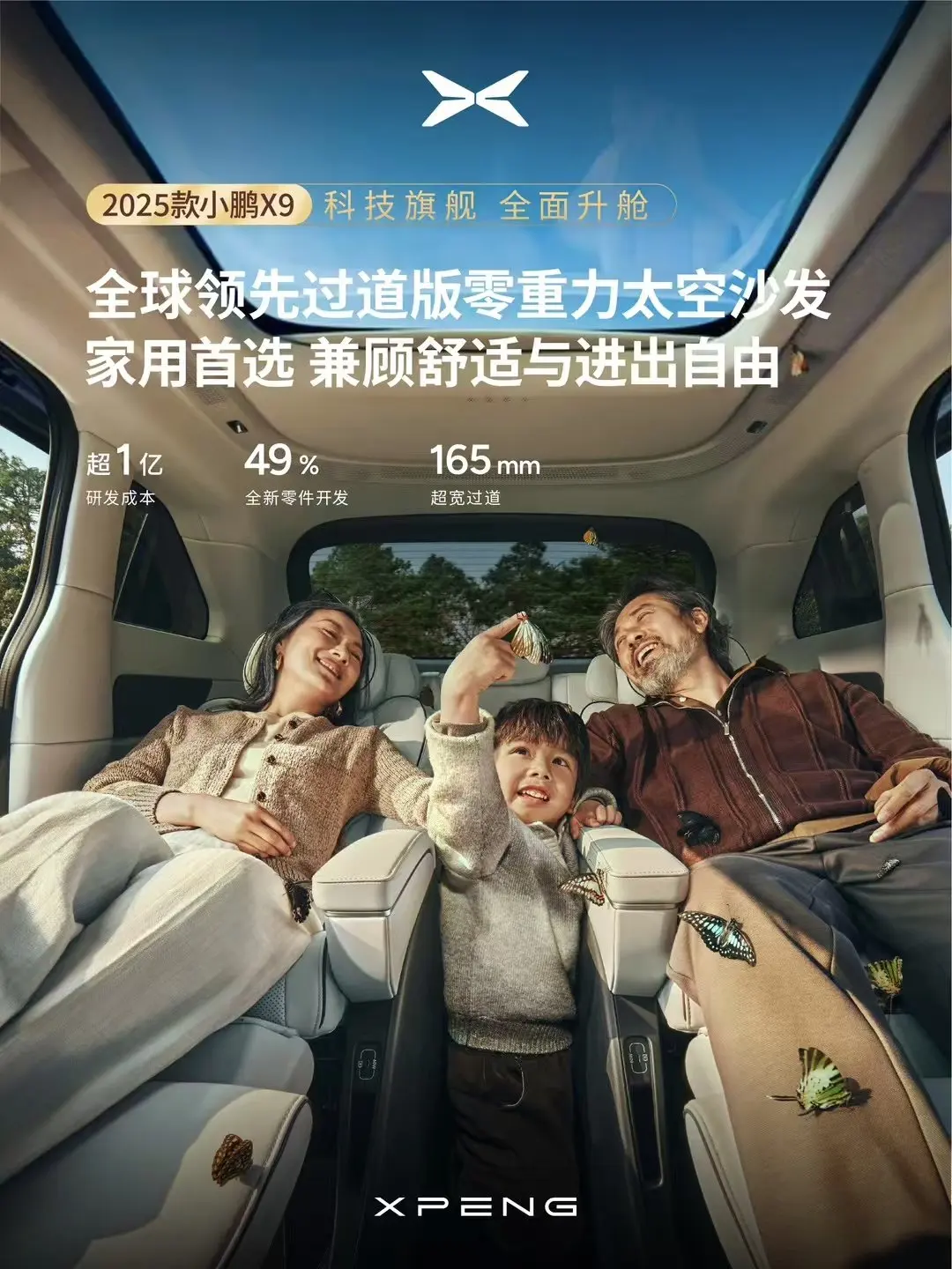 2025款小鹏X9以“科技旗舰 全面升舱”为核心,在延续2024年纯电MPV销冠基因的基础上,围绕用户需求实现了多维突破 :
