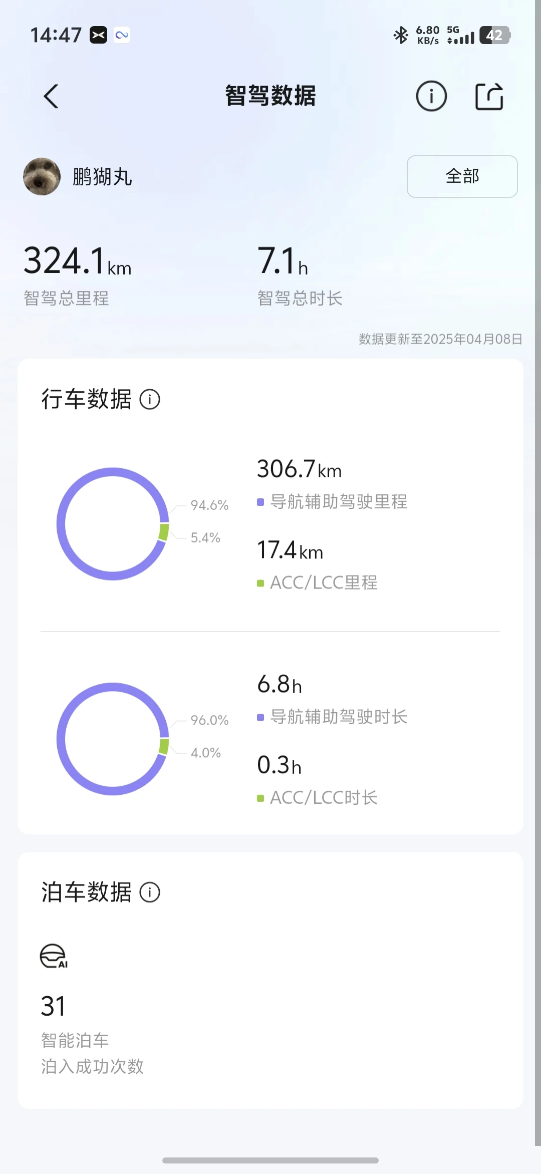 #全新小鹏G6六项全能轿跑SUV# 1000公里的使用小结吗?一不小心已经2145公里了,刚好正值清明假期,一不小心就跑多了,2千多公里下来,给我觉得用的最爽的就是自驾了,而且我使用的场景就是我喜欢堵车的时候去用它,避免了自己一脚刹车一脚电门这种来来回回全部交给小鹏自驾来处理,什么时候停?什么时候起步?他都做得很好,让在长时间的拥堵过程当中脚也得到了放松,身心也得到了放松,你只要掌控好方向盘就可以了,之前对电车的续航都比较关心,这次跑了一下,1千公里的长途下来,感觉就是能够有巨大的惊喜,在高速上真的给了我很大的惊喜,在这样的情况下,续航十分能打,能好做的非常棒,这也是我为什么这次选择了小鹏。 还有他的那个离车泊入功能,真的是很好用,十分的精准,比如说这次去了有些景区,正值假期人比较多,车也到处停的满满当当,然后遇到一些只能狭窄的地方给你停,这时候离车泊入,可是帮了大忙。避免了车倒进去人下不来的情况,是个超实用的功能。#全新小鹏G6六项全能轿跑SUV