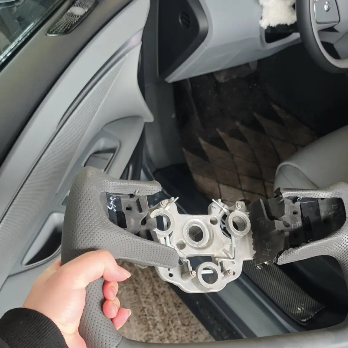 全套改装总支出1180元(配件1080+人工费100),对比动辄数千元的品牌改装方案性价比突出。原厂圆形方向盘保留备用,改装件为第三方定制款,适配原车转向柱和按键接口。