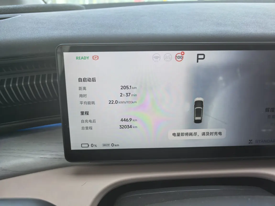 真真切切体会到里程焦虑了!X9 702max版本,充到90%的电,气温25度,在高速上跑续航就只有450公里(续航达成率87.72%)。第一次把车的续航跑到0!就在续航显示0公里,电池电量也降到0%的那一刻,我惊险到达服务区,我嘞个亲娘四舅姥爷,太刺激了!