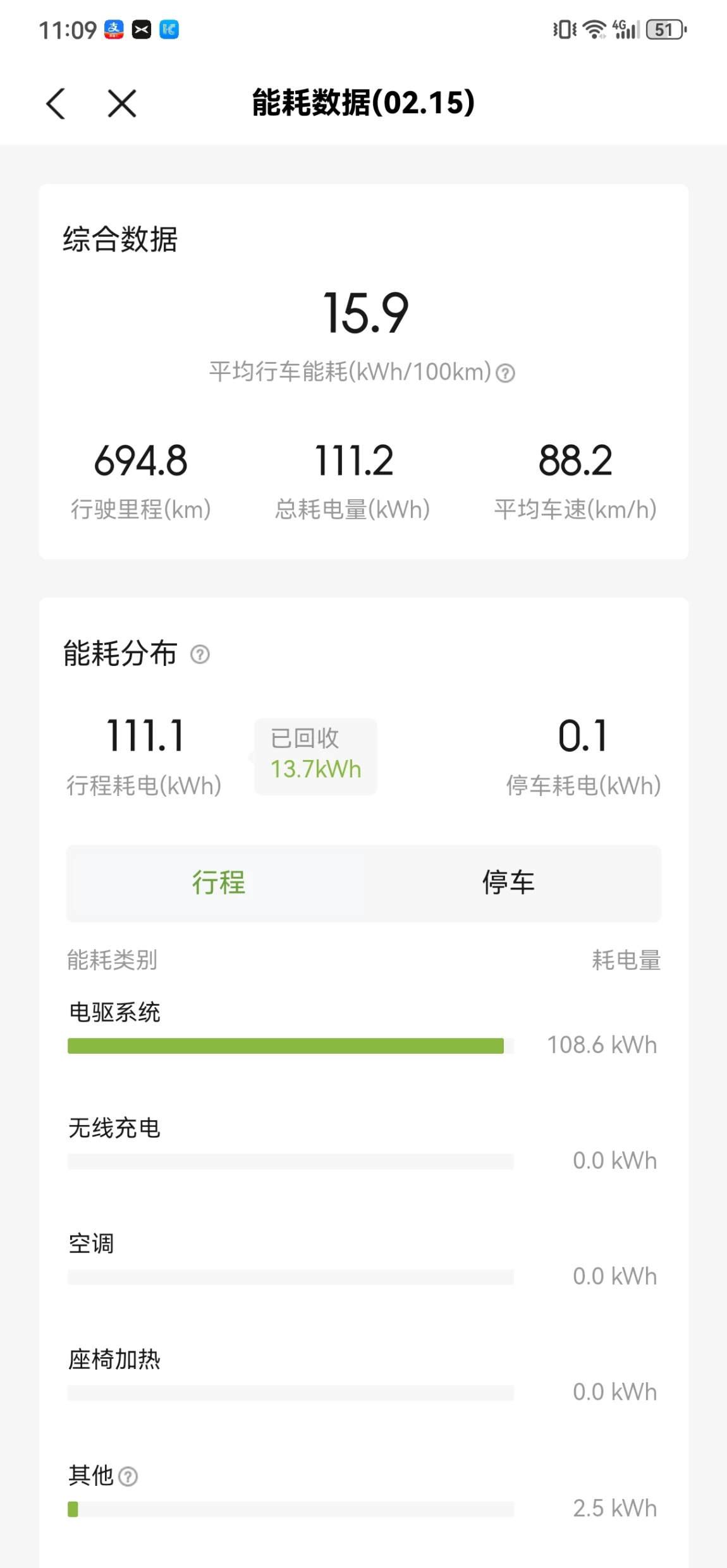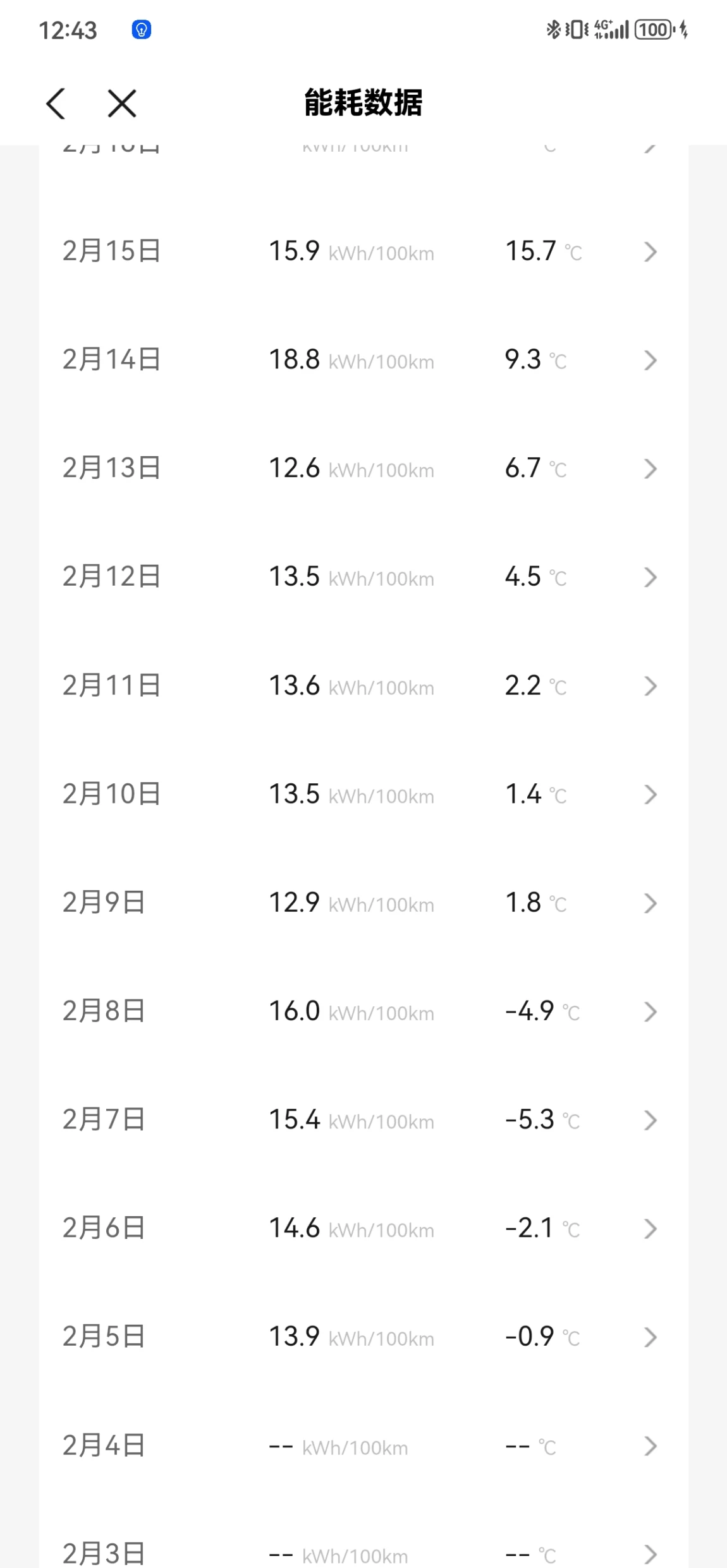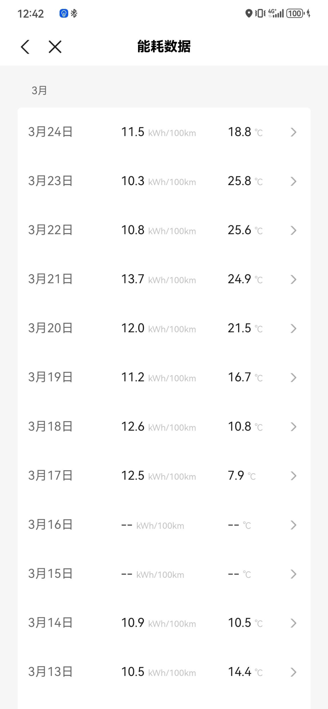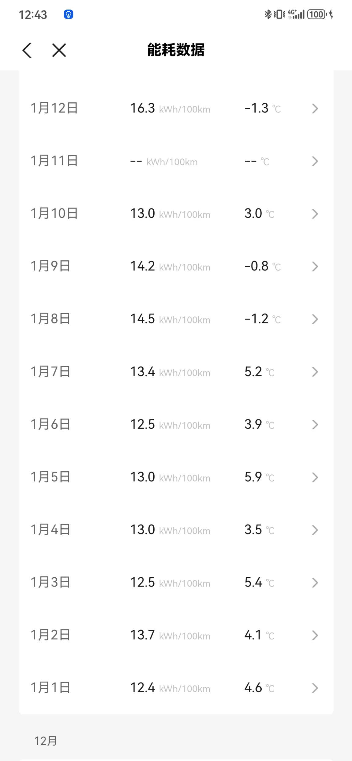 其他时间主要是城区上下班使用,近几个月的部分日常使用电耗如下。