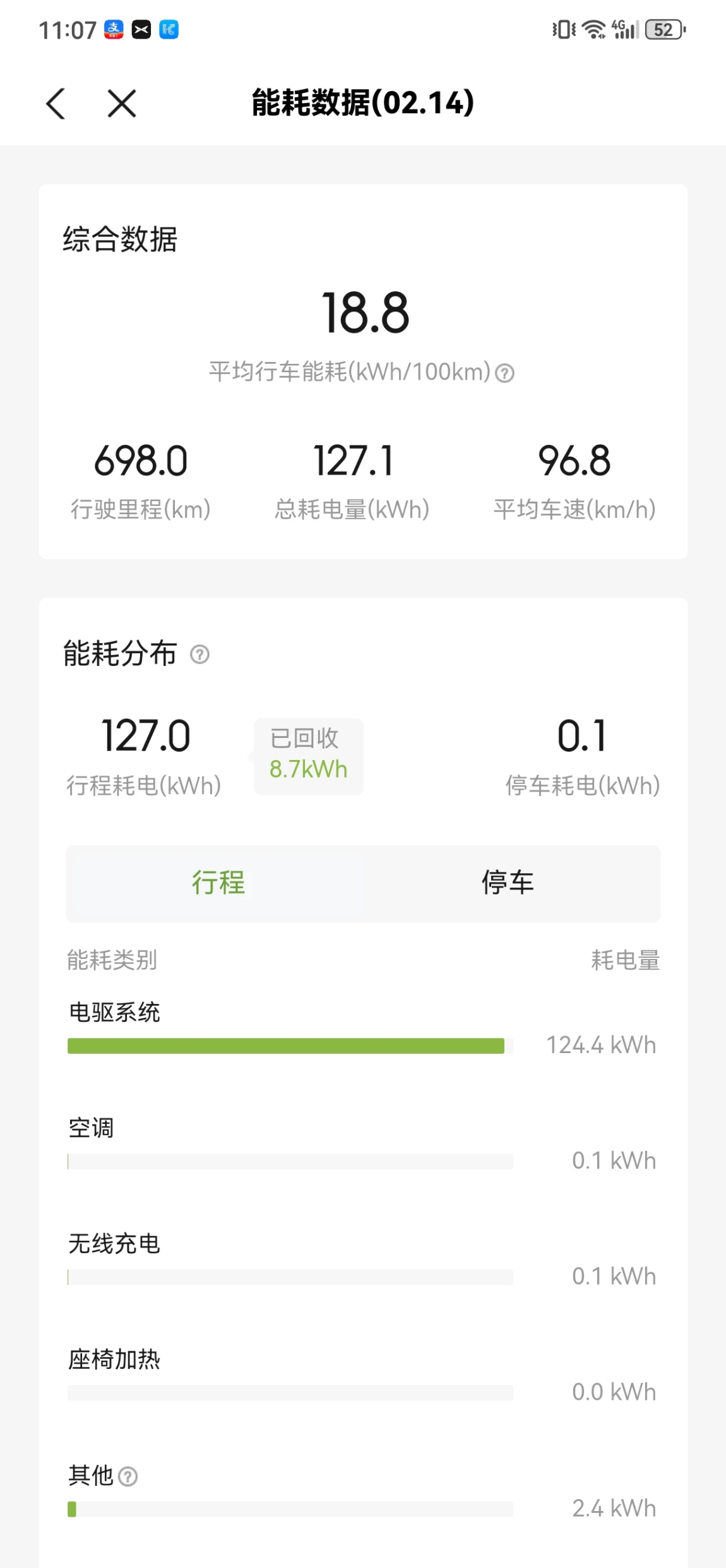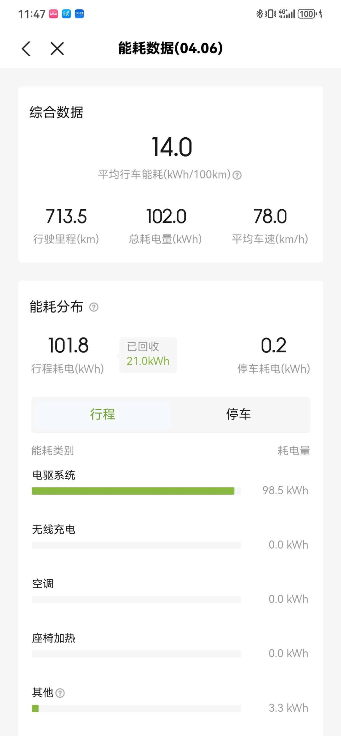 清明节又跑了次长途,往返1400多公里,因车多,平均车速比上次降低了,电耗也降低,但高速续航达成率感觉提升不明显。