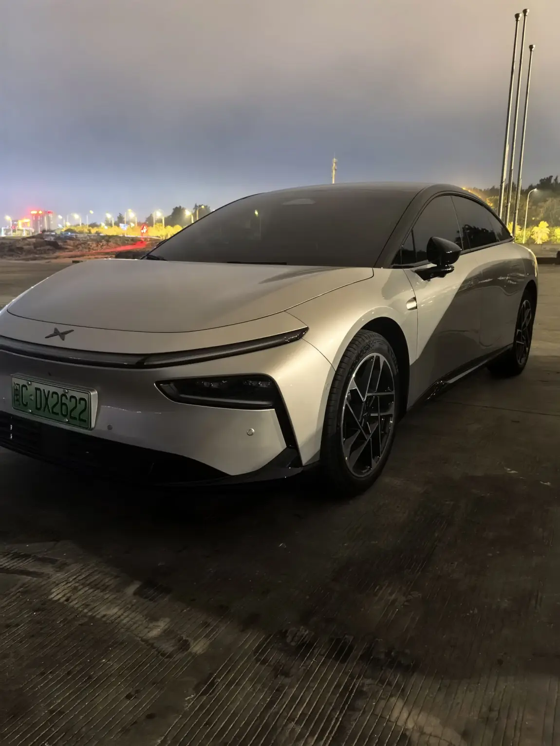 终于等到了心心念念的小鹏P7+!选的是**星际灰外观+白色内饰**,实车比图片更惊艳,低趴轿跑造型+无框车门,开在路上回头率超高。