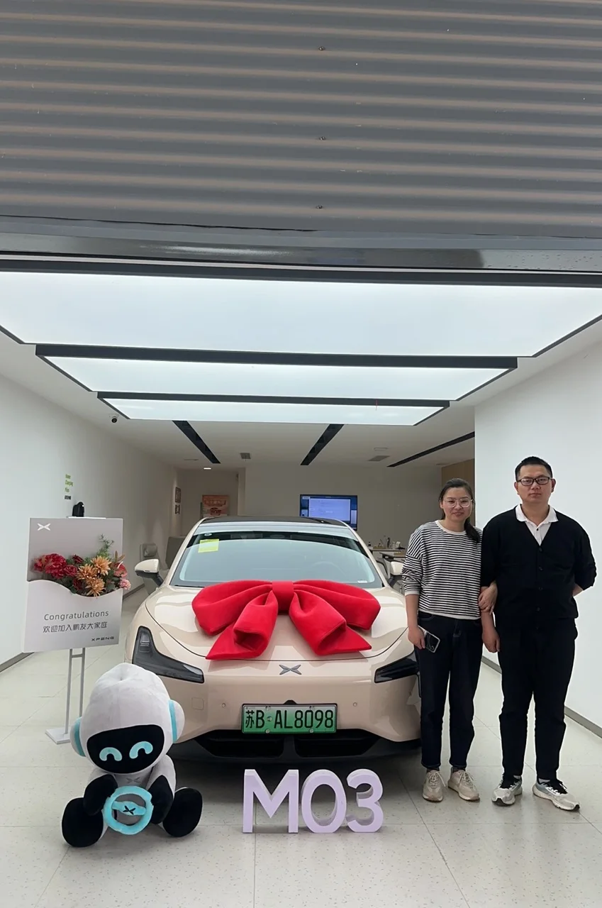 #我的提车作业# 准备换电车前就提前了解了小鹏M03,去现场看了展车,颜值在线,试驾了下,LCC和ACC也很实用,颜值与功能兼并,价格也很香,对比同价位其他品牌,M03的性价比绝对TOP3之内。所以下定也很快,看车到提车也就大概半个月时间。开了400公里,电耗很惊喜,百公里9.5度电,这还是能量回收调低档位时表现。充电速度确实也跟宣传一样20%充到80%只需26分钟。不足点,喇叭声音比较尖,像电动自行车的喇叭声;低速鸣叫声不能默认关闭,每次开车都得手动关闭;自带的无线充电慢不说,充电手机烫的厉害,挺鸡肋的,快充头用原厂数据线连,我老款荣耀40W快充也不支持,本车应该支持45W最大功率快充的,不知道啥原因。