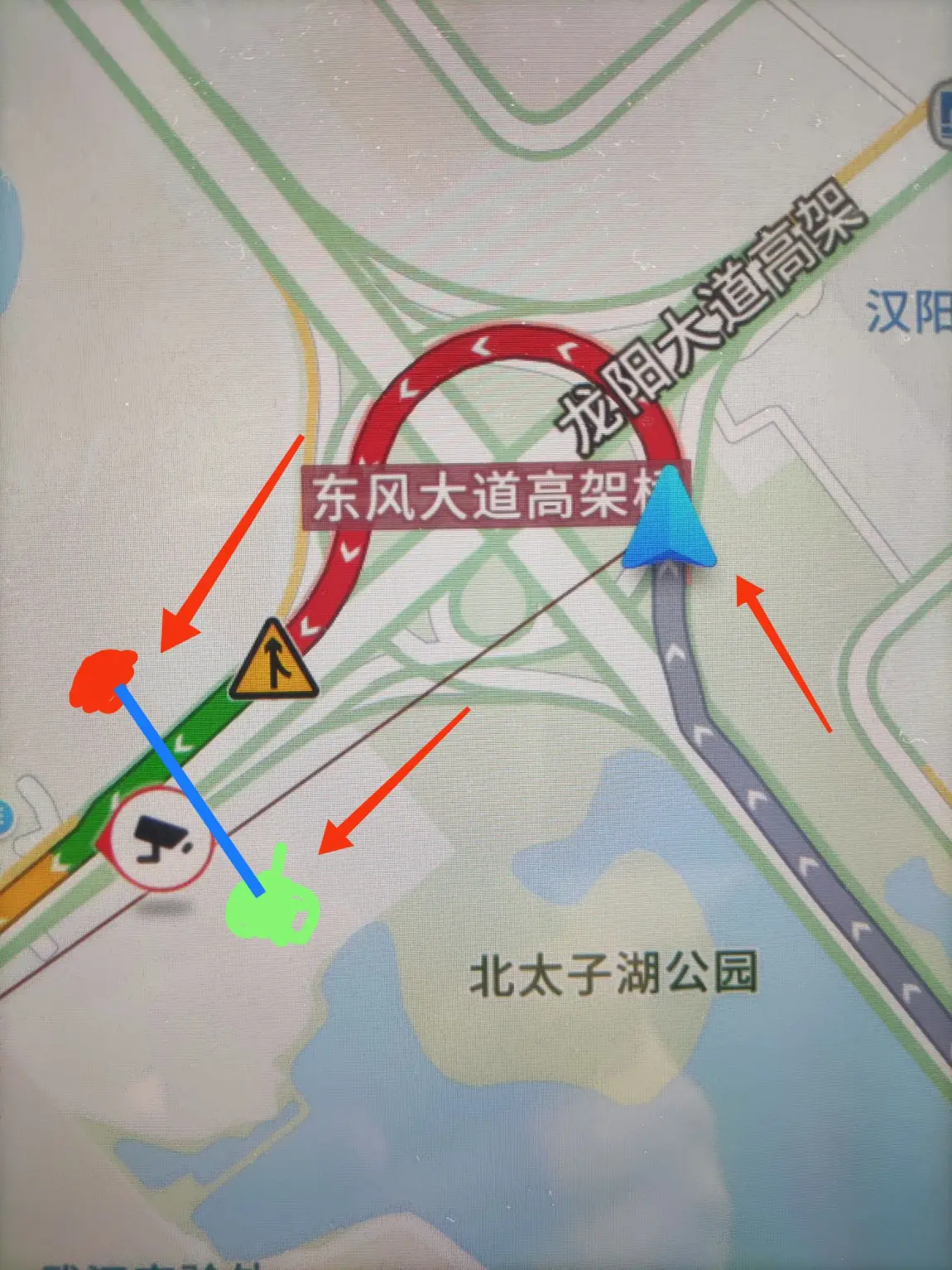 关于城市交通。武汉三环线到东风大道的位置,三个车道汇聚成一条路,也不知当时设计是否再没有最佳方案了,这里每天早高峰会像便秘一样形成一个肠梗阻,天天如此。可能是谁的建议被采纳了,蓝线位置装上了红绿灯,这样左中两条路上有灯控制车流是好多了。城市交通的通畅,在于设计者,也在于驾驶员的技能和高素质,还在于采纳和实施老百姓的智慧,才能让百姓生活更加美好。