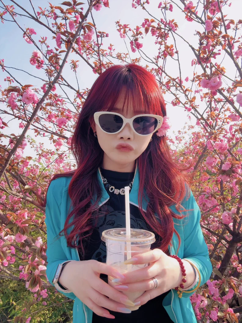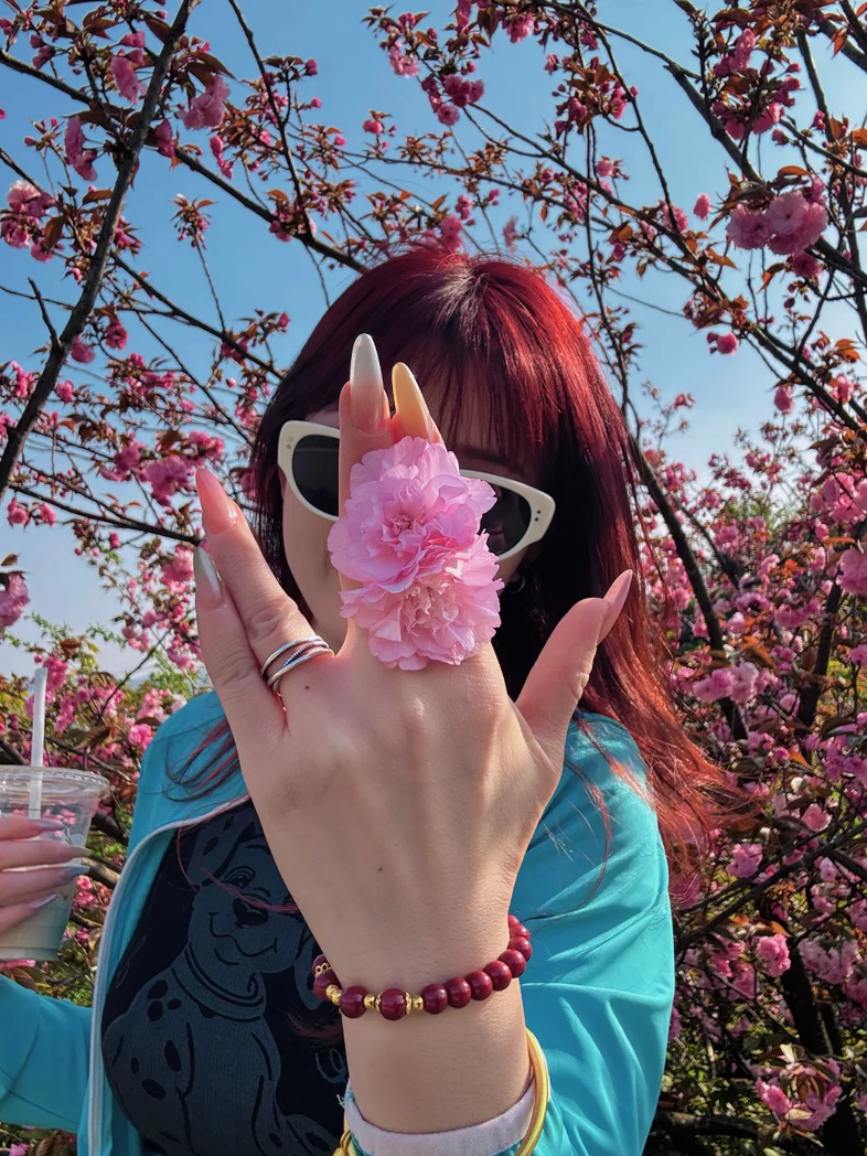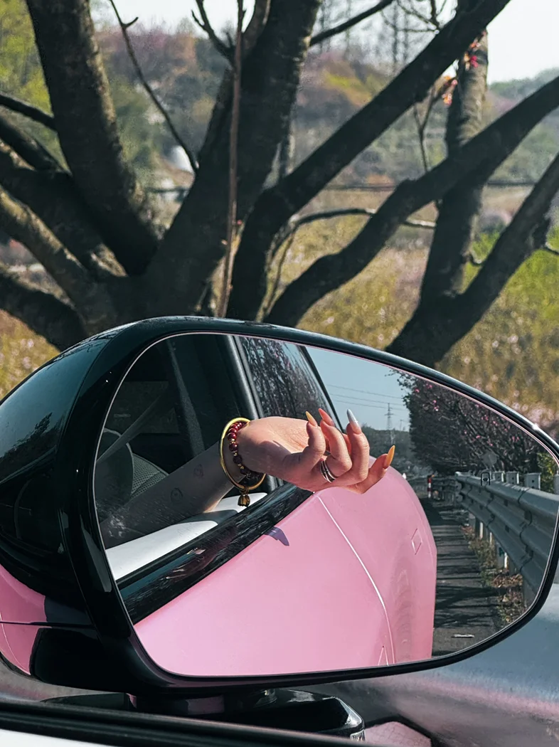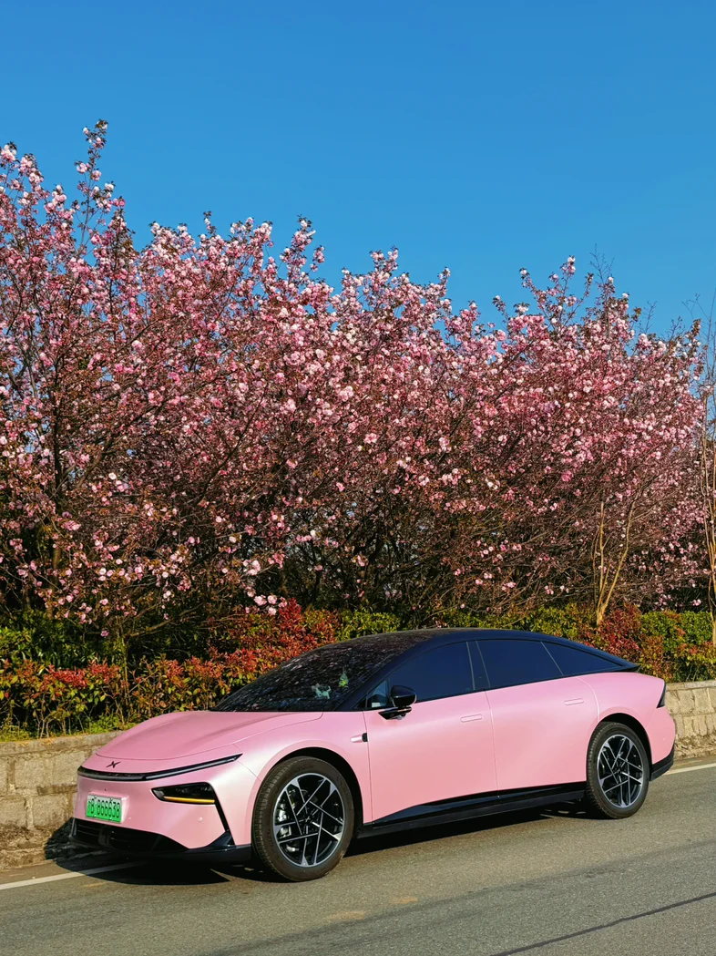 俺的粉色小p,踏着春风,行走在路上,樱花树下的小鹏p7➕,正合俺意