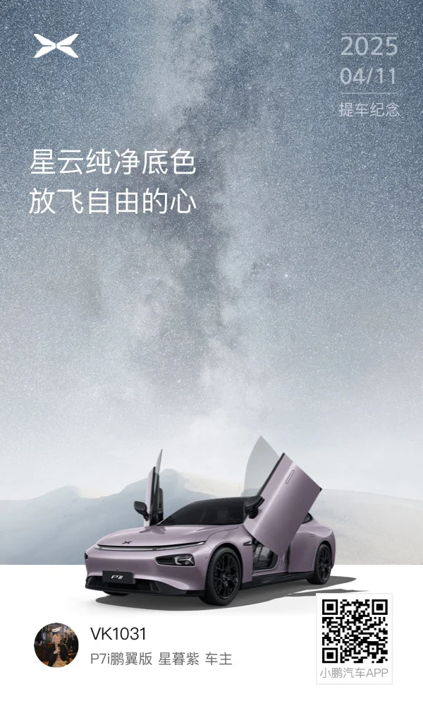 #我的提车作业# 我的小紫7pi💜~~拿下!用了几个周的时间逛了市面上的各种车,逛到小鹏可以说是一眼就相中了!当天就去试驾了两次,下午就交定金,迫不及待的想要拿走惹~从销售小哥到交付小哥,店里其他的小哥都服务蛮好的,虽然有的时候很忙,有的手续办的时候要等,有点子慢,但是都在尽力的做好讲解、服务。2025.4.11纪念一下,上午提车,下午已经光速上牌,全部搞完!开心🥳#智美女鹏友# #喜提全新P7i#