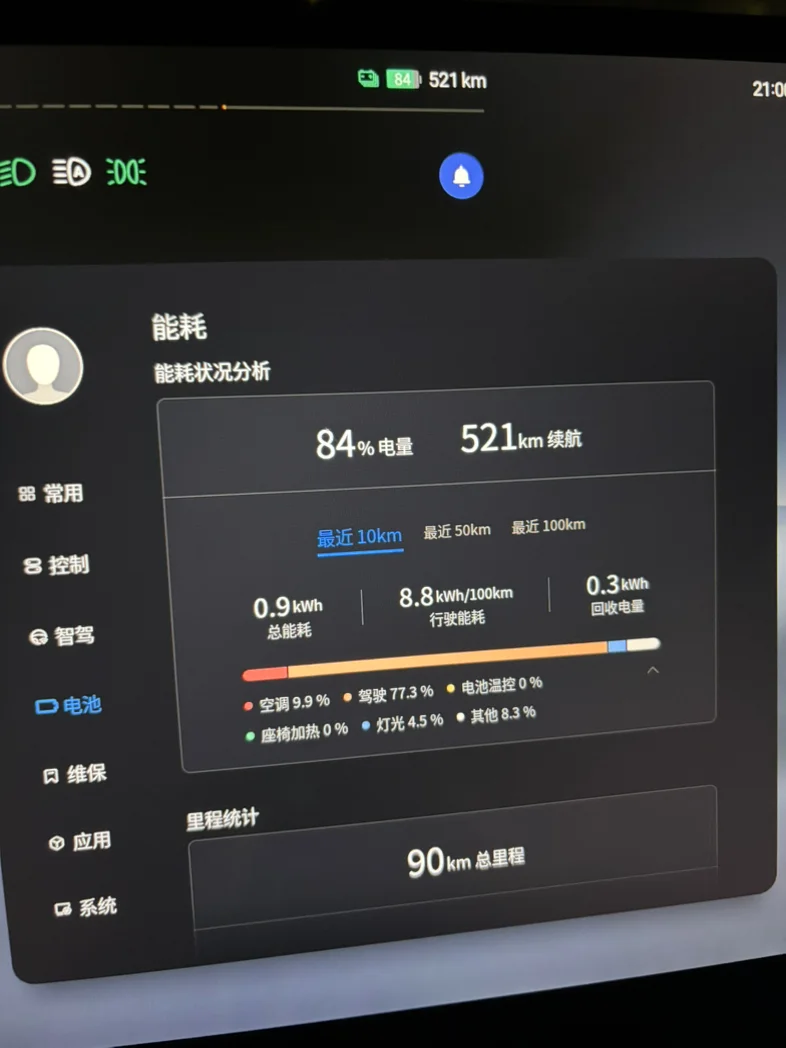 提车90公里,我觉得电耗做的非常好,我平常也不是特别温柔驾驶,熟悉偏激烈驾驶,能做到这样,我很满意,希望以后再跟大家分享用车经验