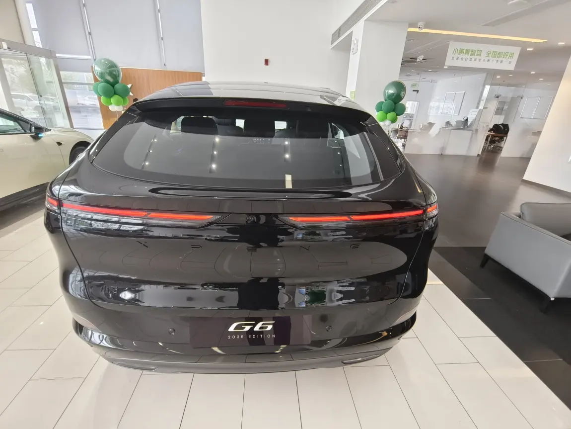 第一眼看到我的“黑武士”G6直接沦陷!✨星河光翼贯穿灯+分体式大灯,科技感拉满,暗夜黑车漆配熏黑轮毂和卡钳,回头率200%!朋友都说像“未来战车”,停在特斯拉旁边完全不输气场~(悄悄说,前脸研发花了1500万,难怪细节这么能打!)