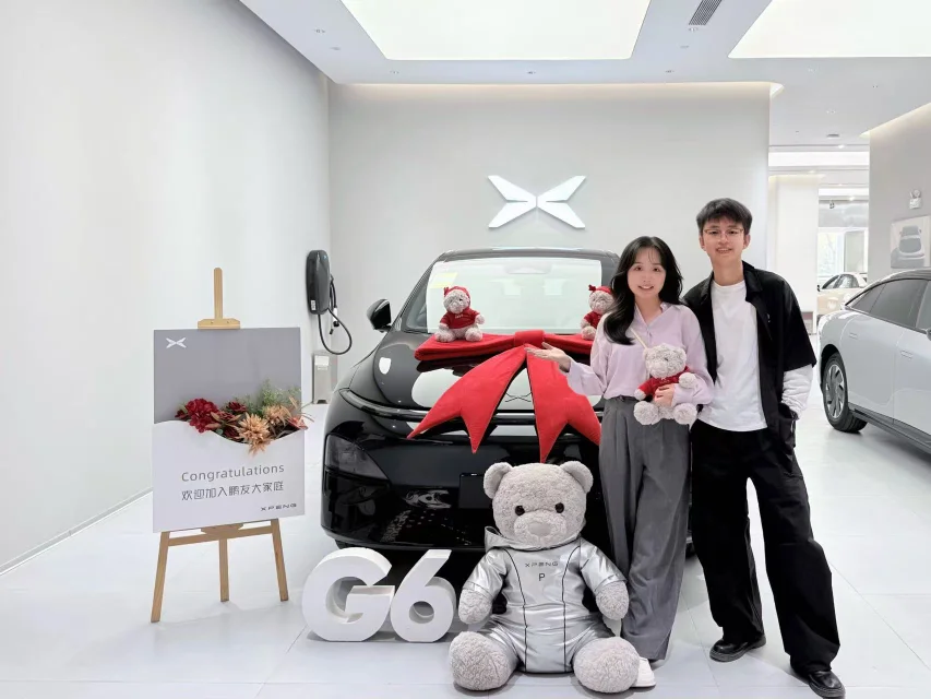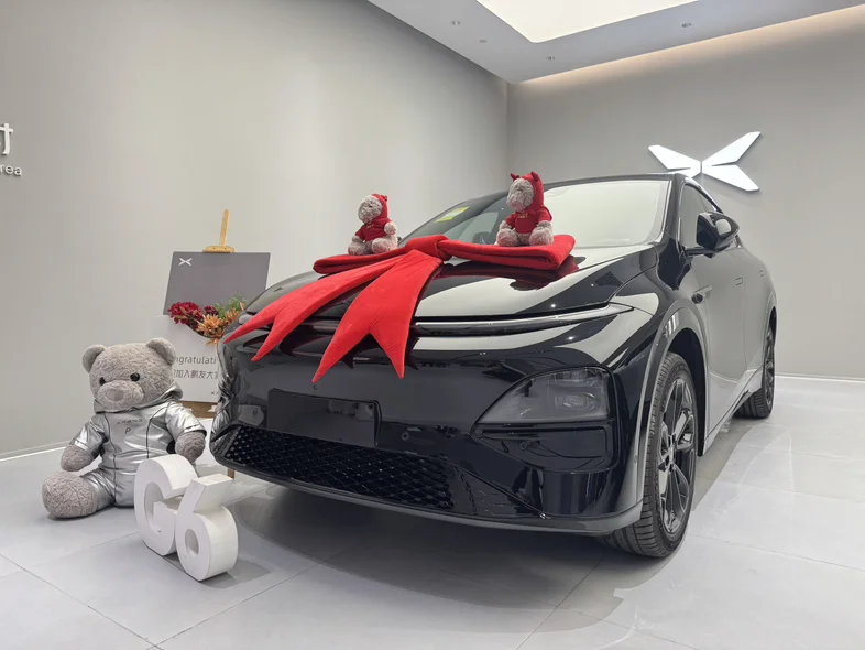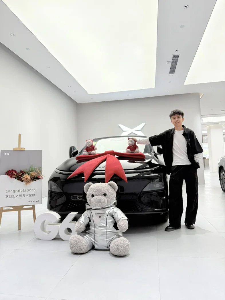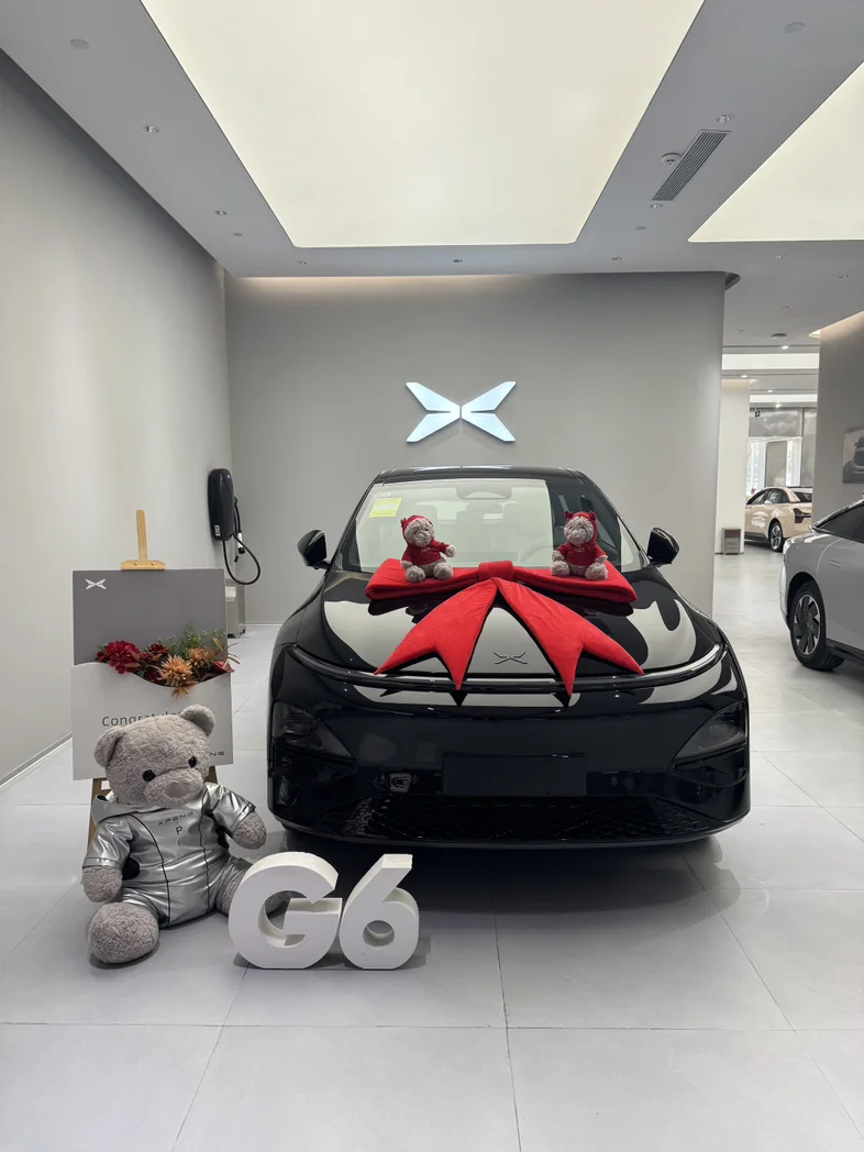 等了一个月,今天终于提了黑武士新鸡柳,心情激动得想马上昭告全世界!本来是3月初陪朋友试驾p7+,偶然看到了新款的g6展车,坐里面忽然感觉气场特别和。科技感十足的外观,流畅的线条,贯穿式灯带,完全长我审美上,女朋友也是非常喜欢。新款发布后,果断订车。今天到店提车,工作人员的服务超贴心,整个流程顺畅又高效,还精心准备了提车仪式,满满的仪式感。以后就和我的黑武士一起奔赴诗和远方啦 !