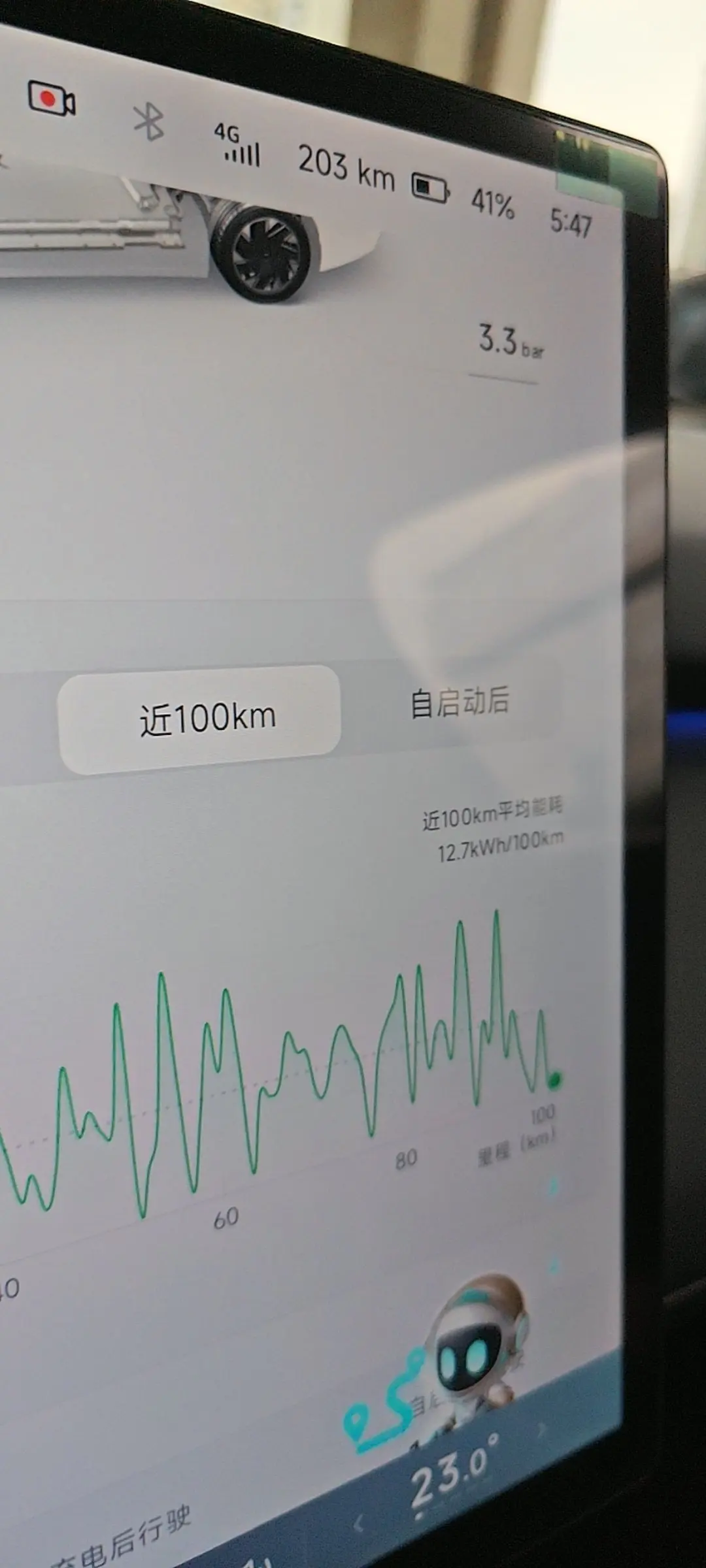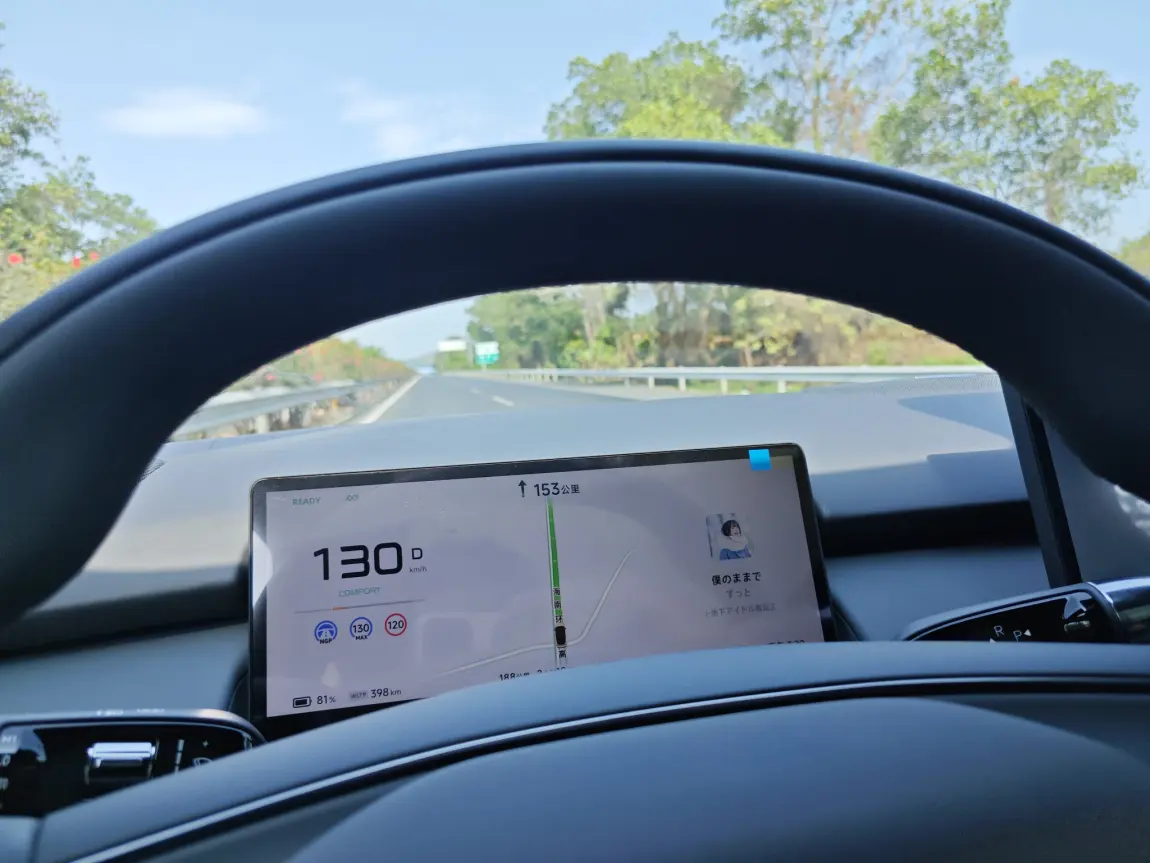出发满电wltp486公里,迫不及待上路开了一下午,实测280公里高速20公里市区,全程空调22度音乐开启,还剩200续航(甚至比wltp还多?)不得不说这个电控还是特别厉害的,高速设置的NGP顶着130时速,平均12.7度电百公里,并没有网上说的发飘迹象,控制也蛮好的,空间非常大很舒适。