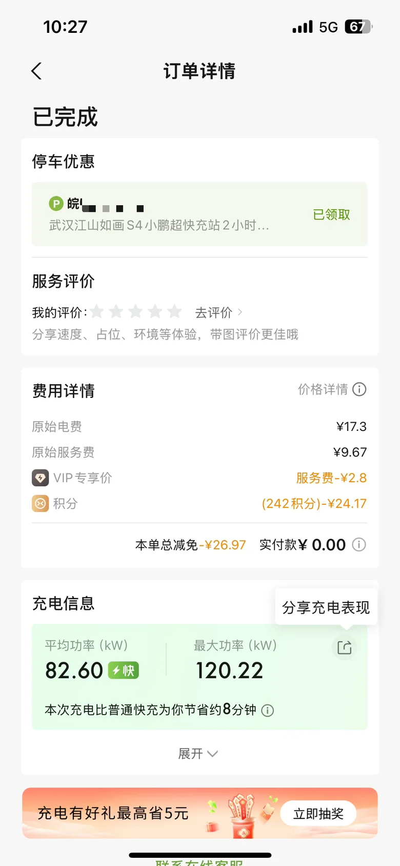🔋第二天就在附近小鹏超充站把我的电怼满,一路上,超充站布局合理,导航直接引导,无需排队,插上枪,扫码,积分兑换免费充电,一气呵成!💳🔋⚡看着电量数字蹭蹭上涨,心里那个美呀!
