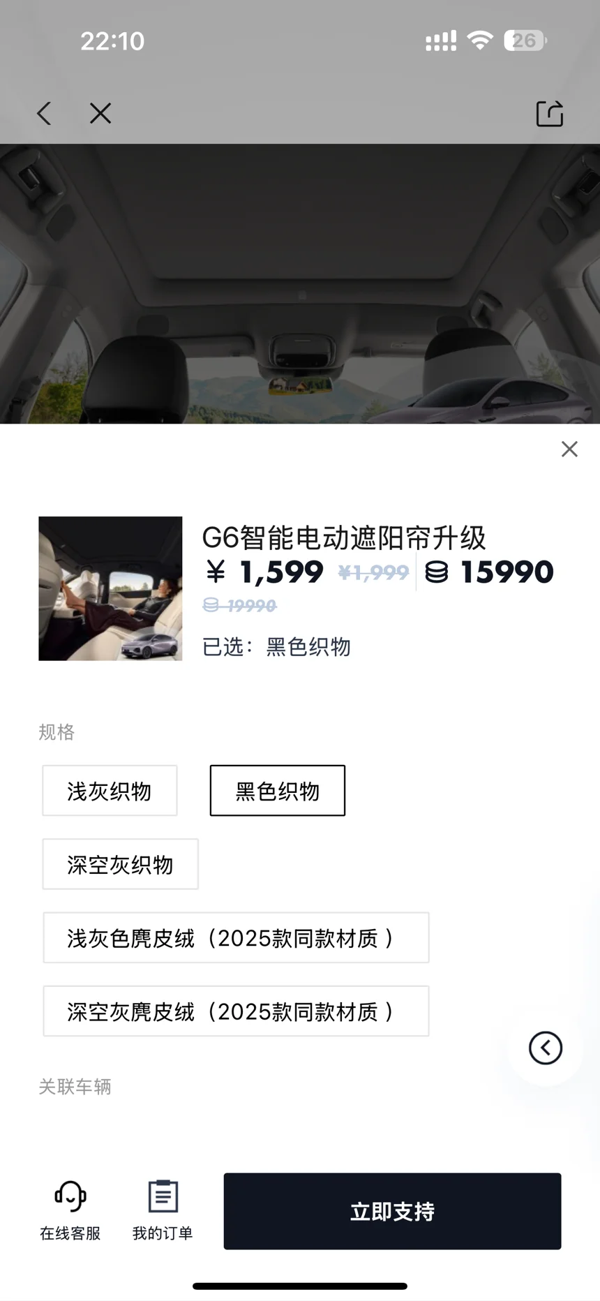 电动遮阳帘,只能按原车顶棚的颜色选黑色织物