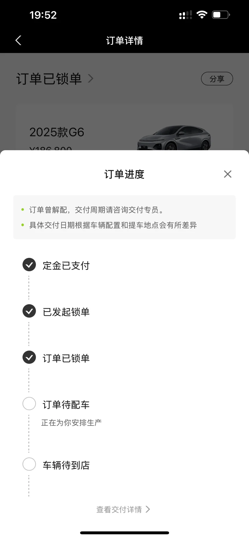 供大家参考: 旗舰版,3.16锁单,4.8配车,本来4.10就可以提车,实际上4.15提车(主要是提车的地方新车补贴结束,需要转移到其他地区提车领取补贴)