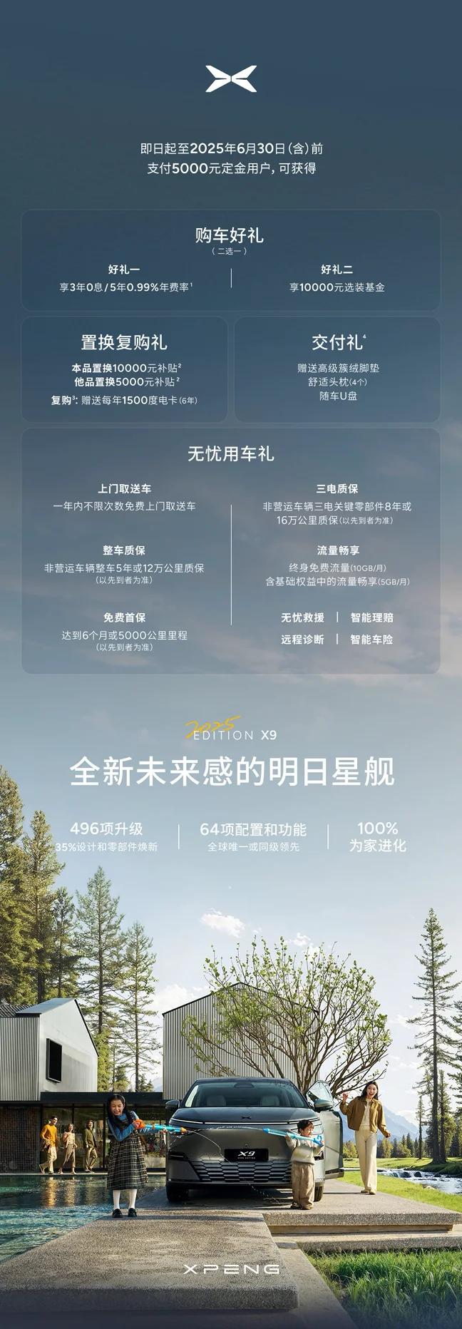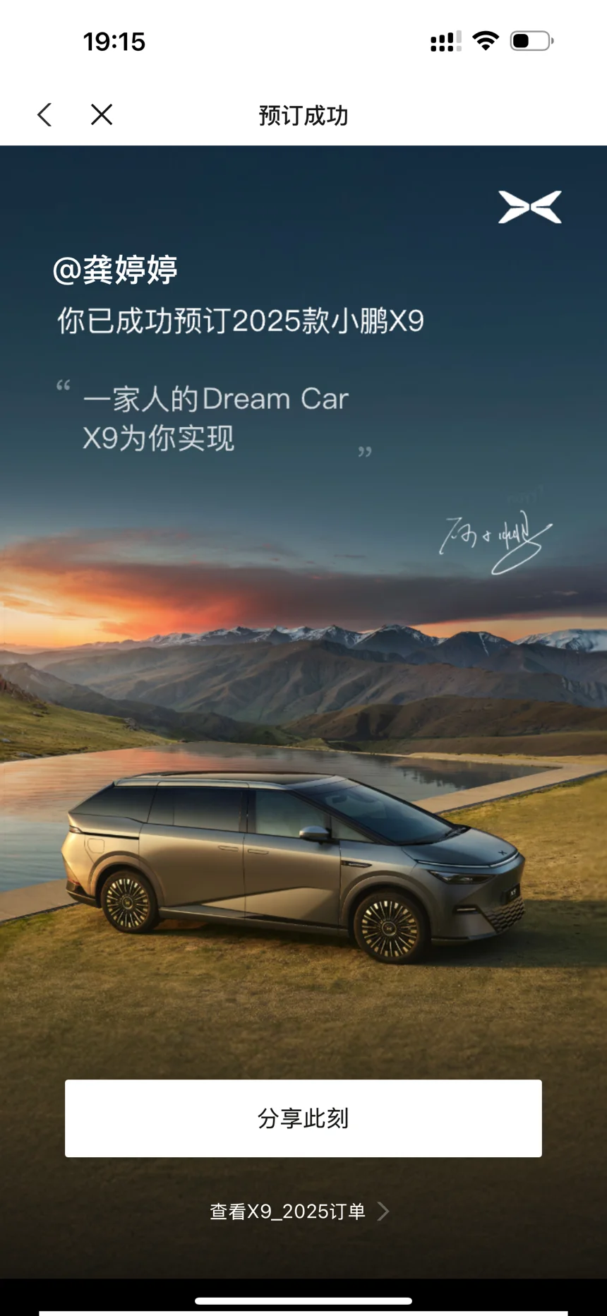 #晒2025款小鹏X9大定锁单# X9以锁单!已定!虽然价格不是很理想!但是还是喜欢车子的居家风格!确实挺实用的!说实在的话、如果能用上最最新的小鹏ai智能驾驶的芯片在X9上的话、对于订购的车主还是很友好的!因为毕竟价格没有降价!卖的应该也不是特别的理想!但是架不住对小鹏的热爱!希望不要再被刺老车主了!