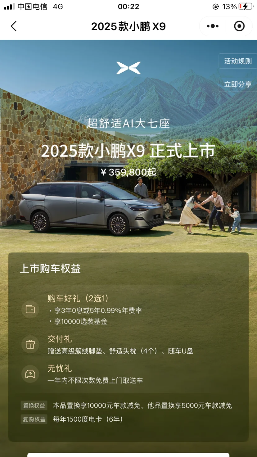 家里老婆女儿我都买的是小鹏P 5、G6,P7,都是小鹏的忠实粉丝,之前也看了很多电车,无论是价格和试驾体验感,最终还是选择了小鹏!希望这次X9不要让我失望!就是想换一辆这种大七坐的满足一家人的出行需求!