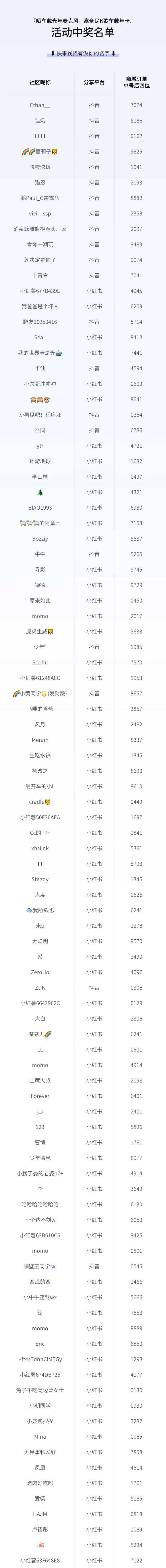 更多奖品发放说明可快进至名单底部查看👀#小鹏车载光年麦克风嗨歌神器#
