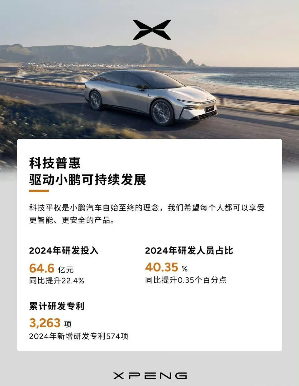 作为一名G9车主,买车3年来一直对小鹏的汽车技术发展比较关注。小鹏汽车近年来在研发能力上的表现突显了其作为中国新势力车企的技术定力与战略布局,尤其在智能化及跨领域创新方面展现出很坚定的决心,同时也看到了它的成效在逐渐落地。看完其发布的2024年ESG报告后,我的感受可以用下面三个词来形容:敢涉险滩、敢探新路、敢为人先,具体有以下几点感触: