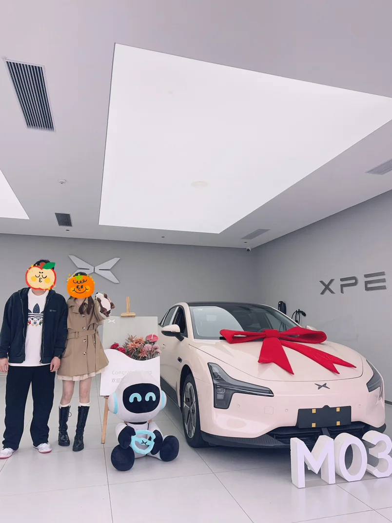 最后是和男朋友的提车公式照,拜托了鹏子m03,以后出行平安就靠你了👍👍