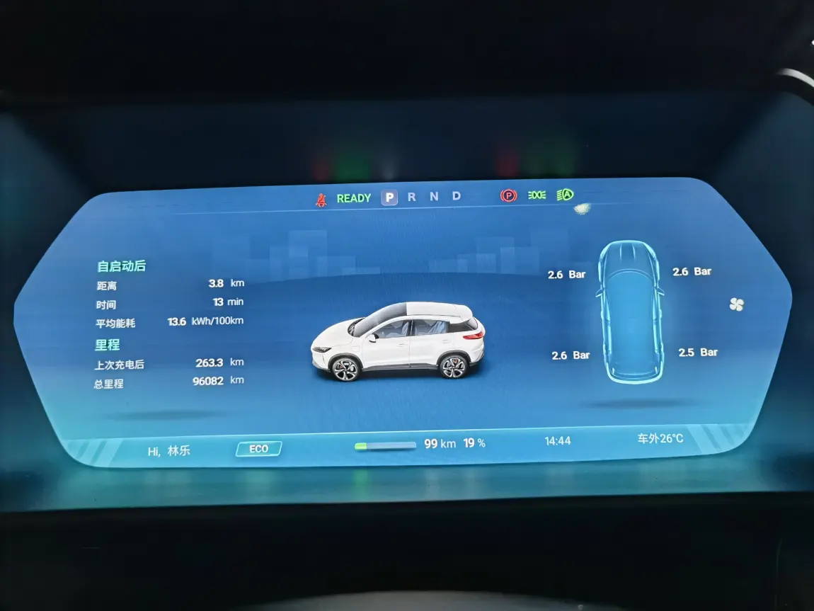 上一次充电至468㎞,剩余99㎞,NEDC续航369㎞,实际表显行驶263.3㎞,约打七一折。耗电43.38度,一度电约跑6.1㎞,百公里电耗16.5kwh。
