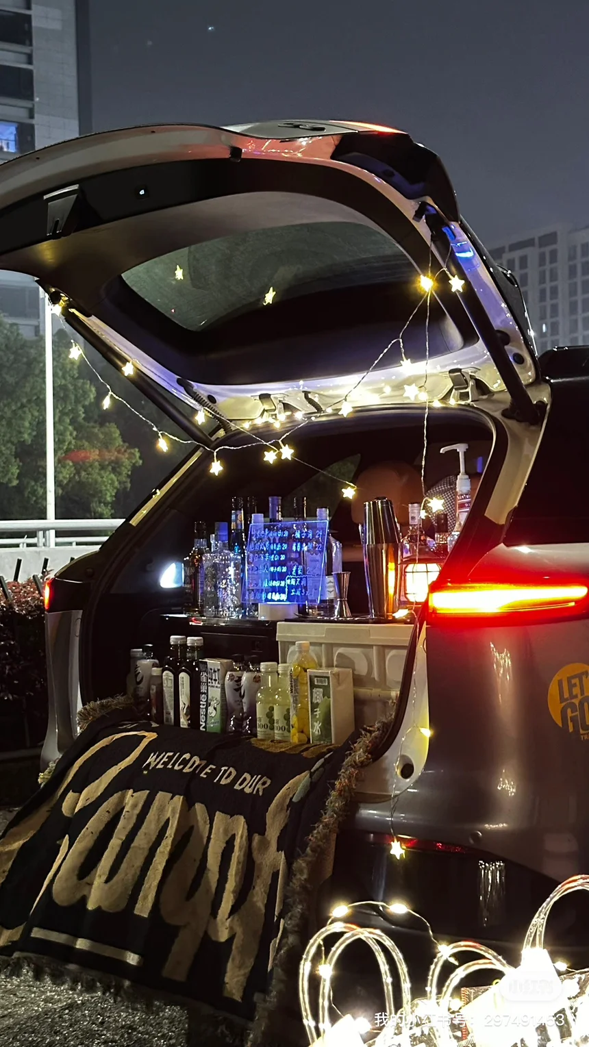 开着老g9去摆摊调酒,后备箱超大超能装,可以直接当操作台用,太省心了