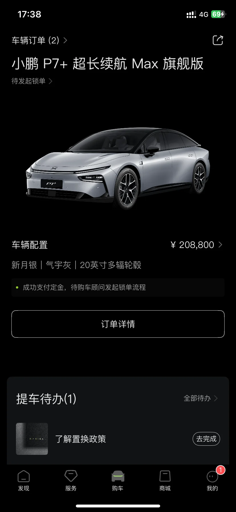 #晒5C旗舰版小鹏P7+大定# 对小鹏印象最深的就是小鹏智驾,当中也试驾了非常多的车子,最后还是选择了小鹏,今天看到了新出来的P7+非常的喜欢,性价比也高,之前也对比了鹏多种车型,最后还是觉得这个心这个好买新不买旧,这次为什么决定下定呢?是因为之前去展厅实地看过这个版本还是非常适合我的于是就激情下单了,最后祝小鹏越来越好,我们越来越好,大家一起鹏程万里,一起加油