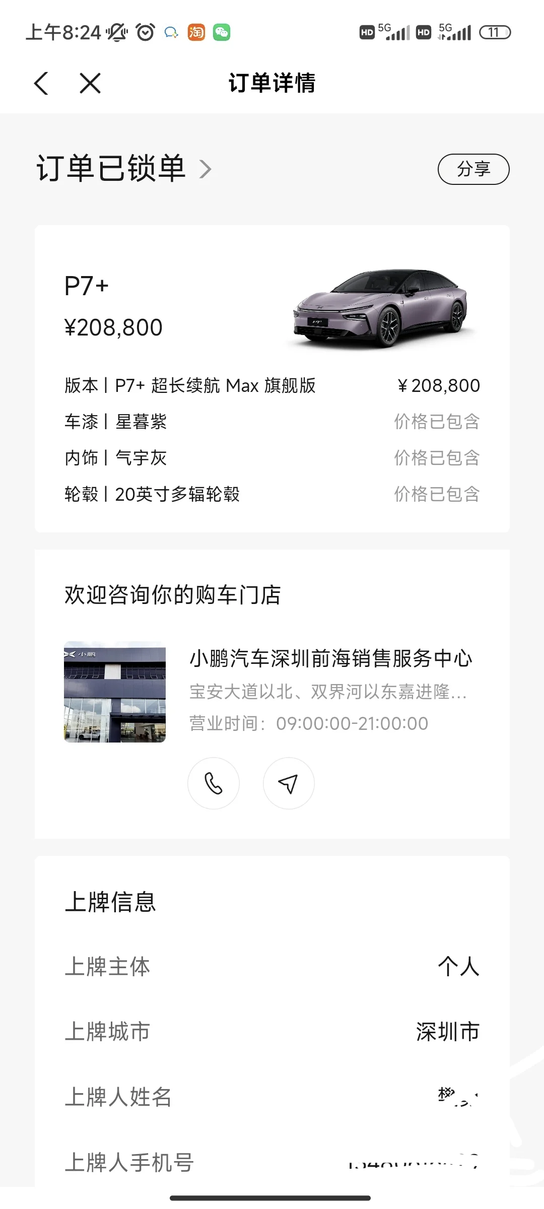 #晒5C旗舰版小鹏P7+大定# 家里一台2019年购买GLC,2022年新增理想ONE,自从开了新能源车,油车能不开就不开,新能源车的舒适性,驾驶体验,智能化水平都远超油车。一星期前LP说想把GLC油车换成长巡航纯电车,马上开始行动,先试驾了极氪007GT,小米SU7,最后试驾小鹏P7+,小鹏P7+大空间、高颜值、后排小桌板,都深深吸引LP,试驾后据说上海车展要发布5C版电池 决定邓新版上市在下定,4月23日上午公布旗舰max版20.88万后,马上下定并锁单。期待早日提车,开启鹏友生活......