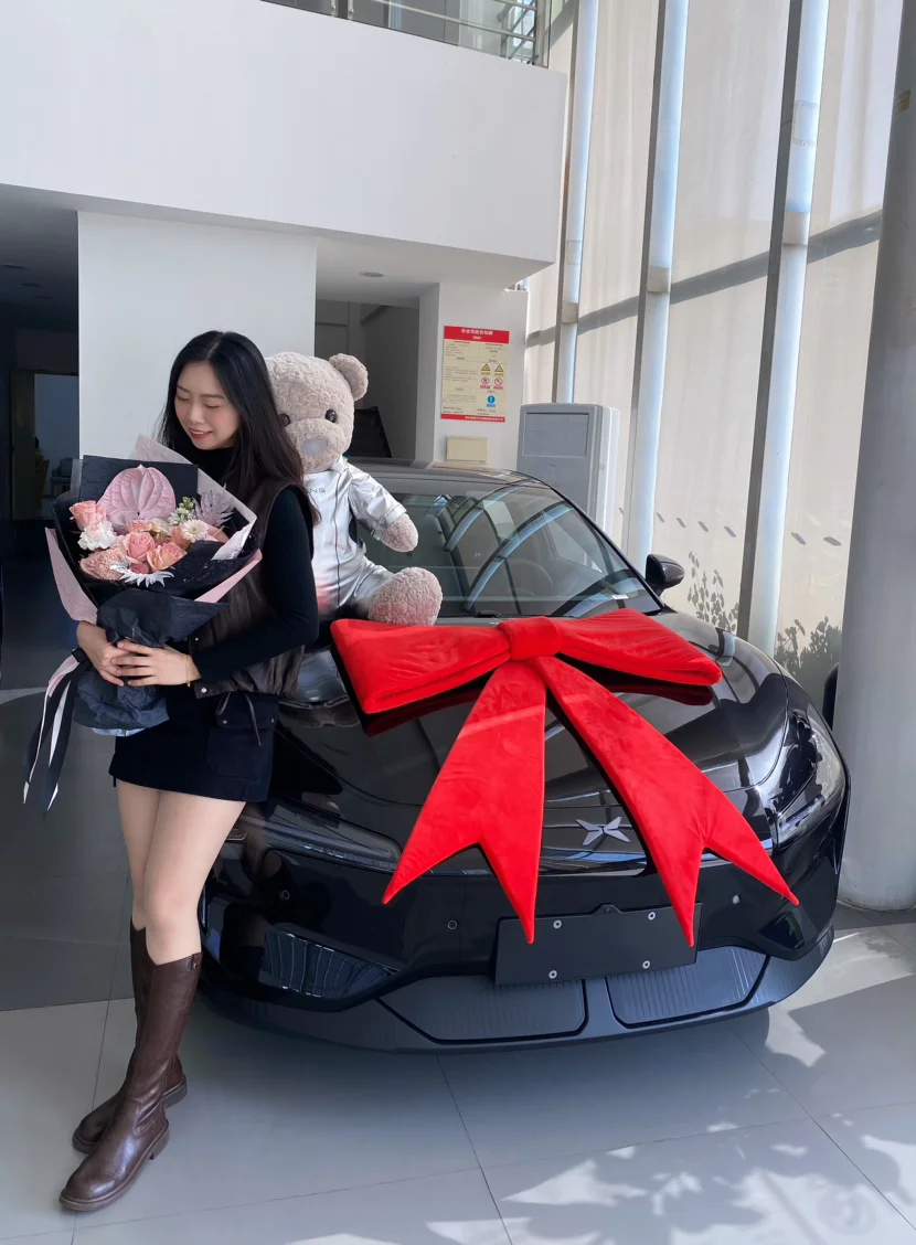 【🌟人生第一辆座驾get!】🎉终于提车小鹏MONA M03!抱束喜欢的花,仪式感拉满。黑武士外观真的超戳我!简洁内饰超赞,开始期待接下去的出行了!🚗🌸