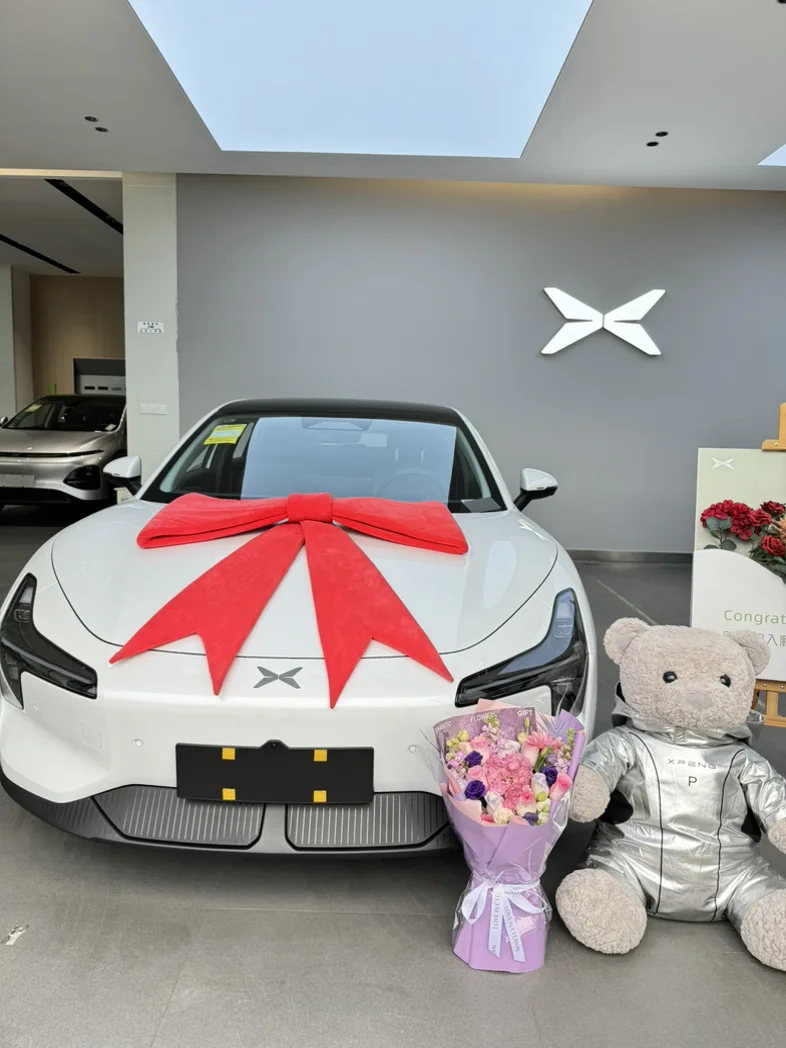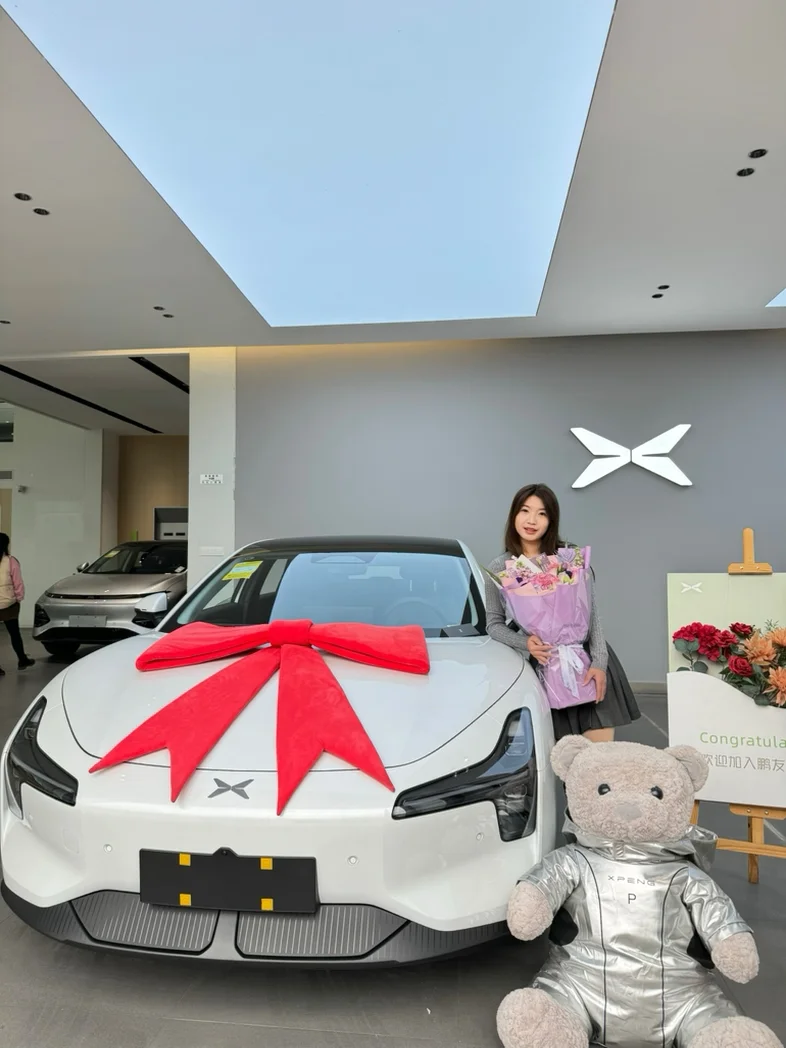 正式成为小鹏友啦 !这个白色在太阳光下还是闪闪发光的,简直是太少女了,时尚的外观设计非常符合年轻人的审美,颜值高
