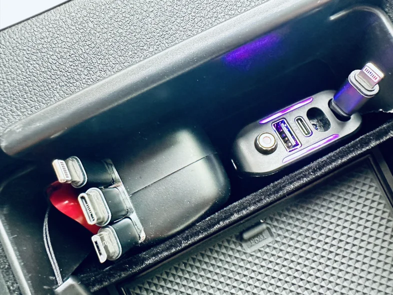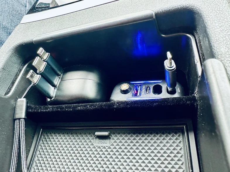 好用!比倍思的那款好用太多了,充电线进出丝滑,角度也更加适合扶手箱的布局!
