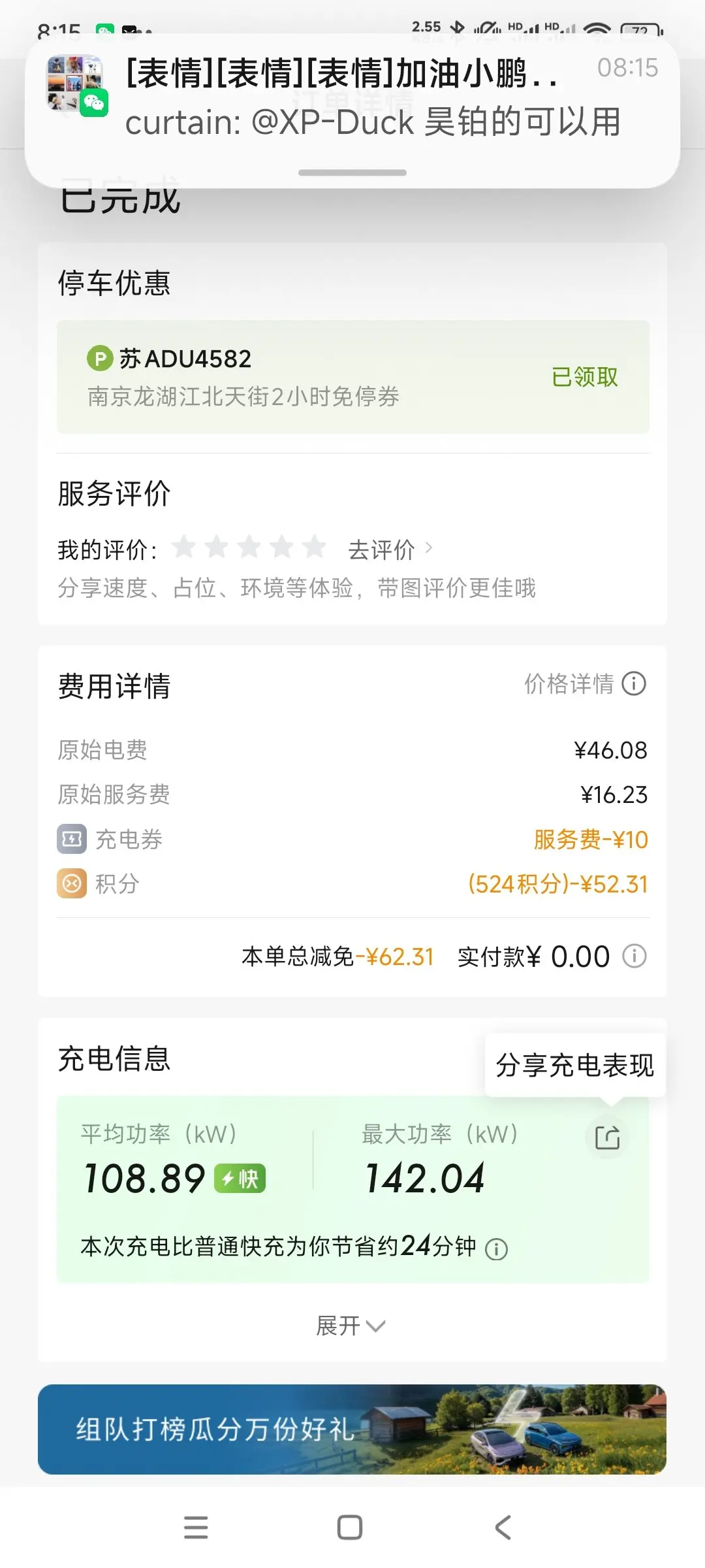 充电过程中,我在附近吃了个简餐,回来电量已经充得差不多了。要是用普通充电桩,这时间可远远不够。小鹏 S4超充桩真的解决了我的里程焦虑,以后跑长途更有底气了!@充电小助手