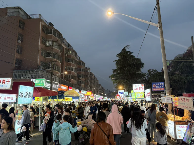 充好电继续出发,顺利抵达赏花地。樱花如云似霞,粉粉嫩嫩开满枝头,微风拂过,花瓣飘落,浪漫至极。置身花海,所有的疲惫都被一扫而空。玩累了,去附近小吃街大快朵颐,烤串、卷饼……各种美食让人停不下来。