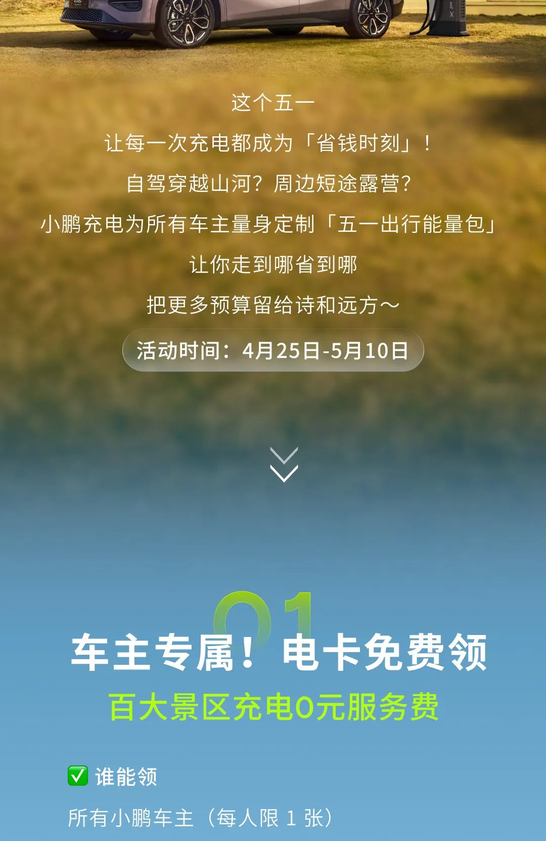 风景在侧,鲜花伴行。电车旅行,安享静音之旅,澎湃音乐,智驾省心。小鹏快冲,保驾护航。希望小鹏快充对小鹏车主更优惠更合适的价格。