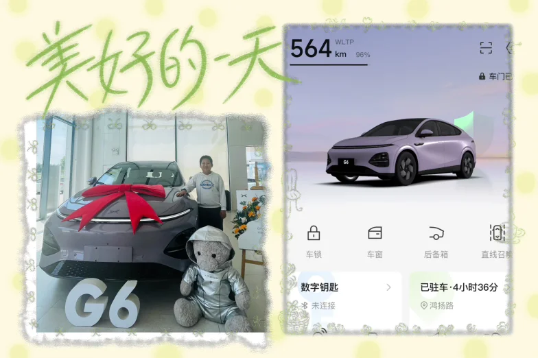 清晨的阳光格外温柔,我怀着雀跃的心情走进小鹏交付中心,终于见到了等待一个多月的2025款G6超长续航版。初见那抹「星际紫」的瞬间,呼吸都放轻了——车漆在光影流转间泛着金属质感,晨光下像披着薄雾的紫水晶,比宣传图更令人惊艳。