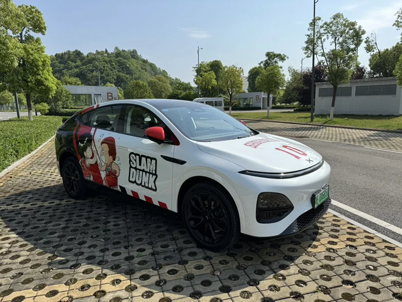 三月十六号下的定,等了一个月终于车到了,黑武士特别帅,但是就是一天要洗一次,不然好大的灰,最后为了一劳永逸,还是贴个改色膜,把灌篮高手跟小鹏联动是个什么效果呢,一起来欣赏,就说帅不帅吧😀