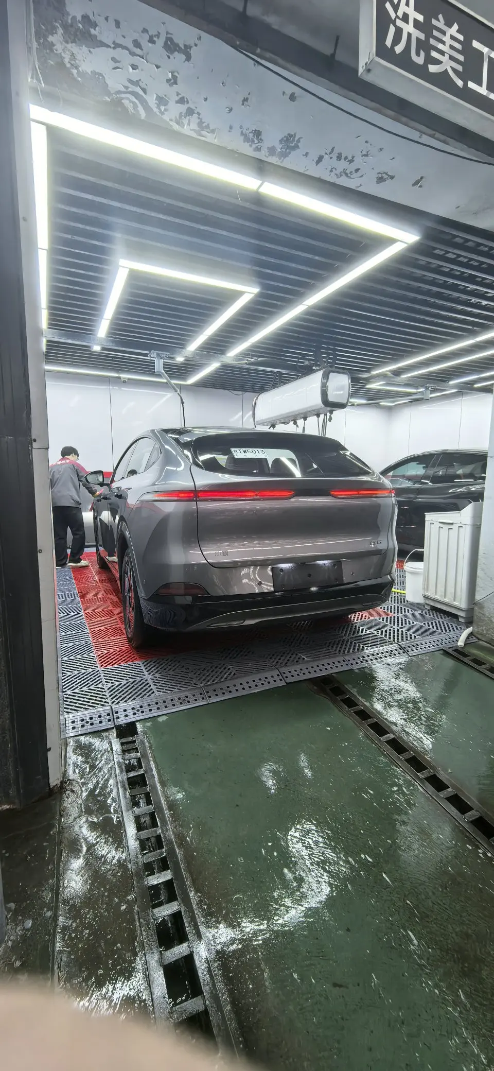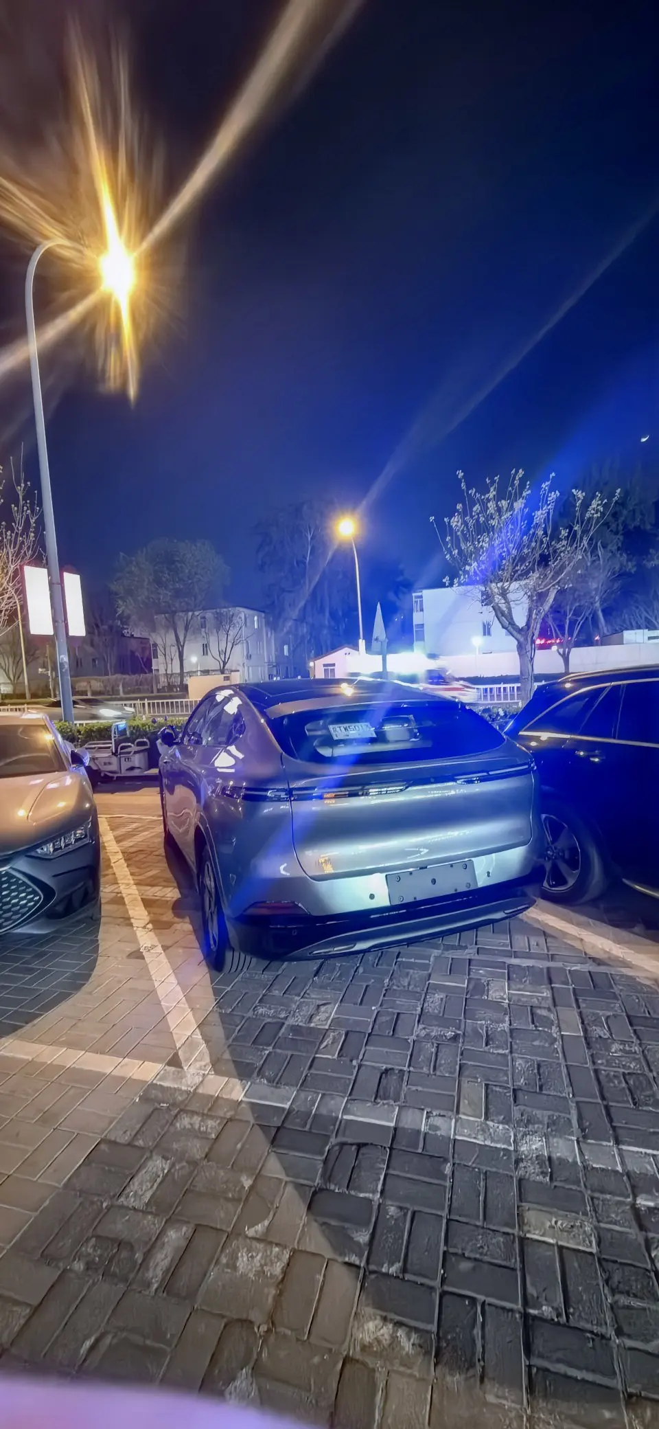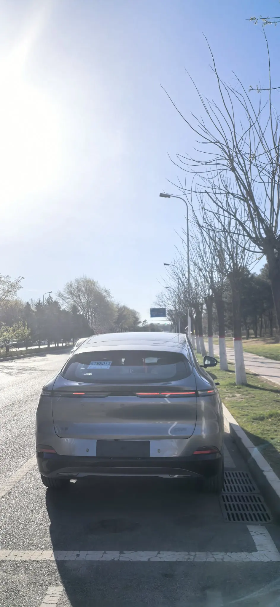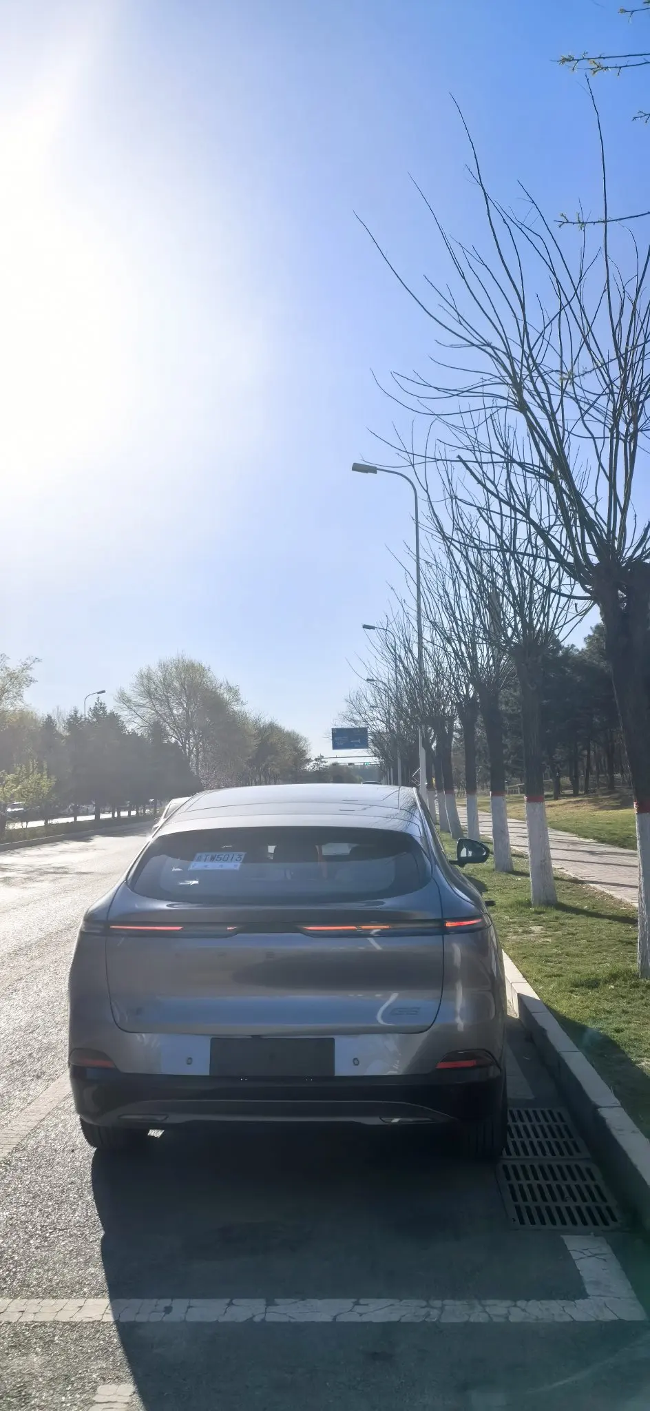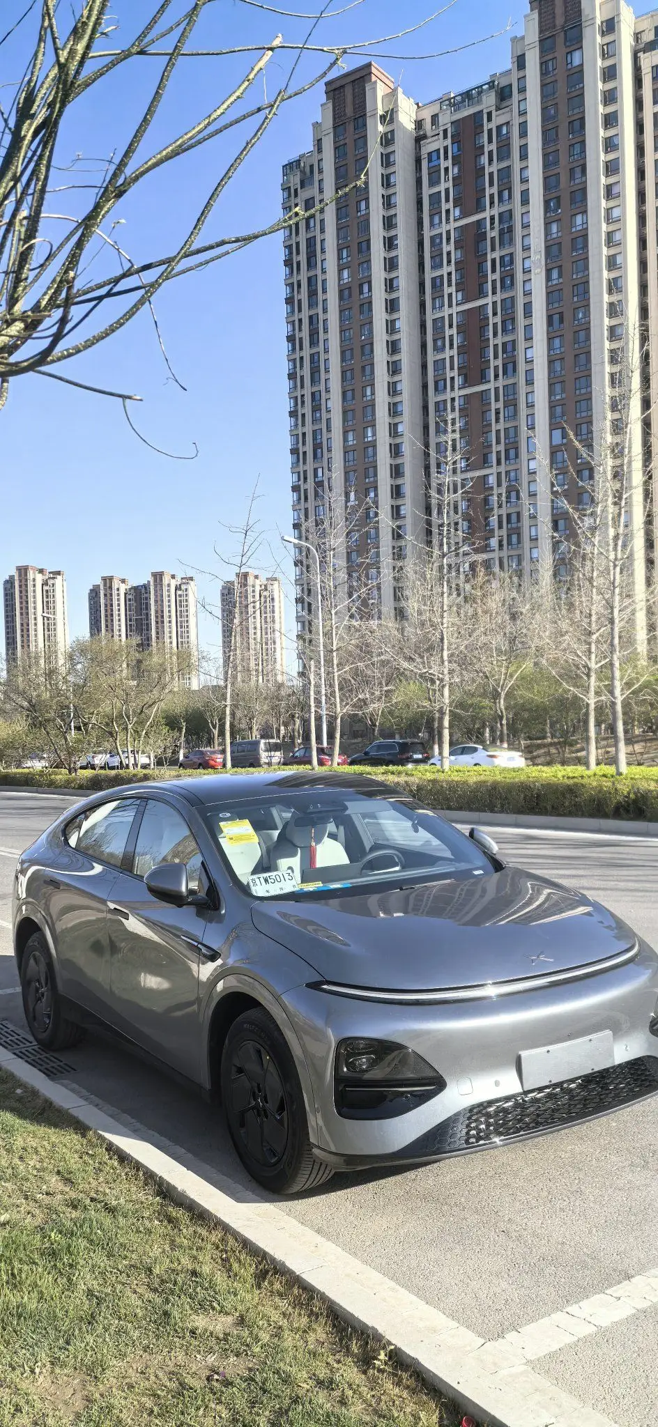 小鹏G6的外观轿跑SUV的造型,线条流畅,溜背设计超有运动感。前脸封闭式格栅搭配分体式大灯,科技感拉满。车身颜色我选的灰色,低调沉稳不出错,在阳光下特别亮眼。贯穿式的尾灯,晚上点亮辨识度超高。