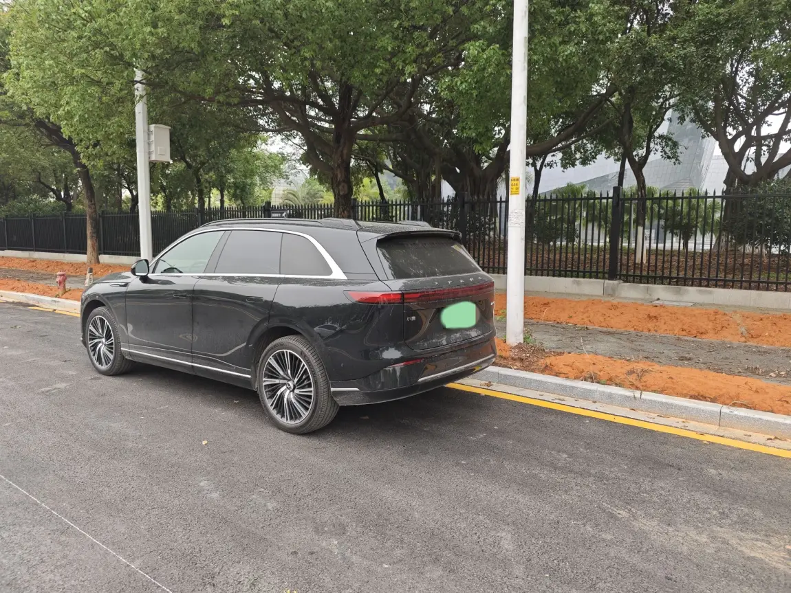 外观:黑色车身越看越耐看,漆面在阴雨天依然泛着绸缎般光泽,贯穿式车灯夜间辨识度拉满,21寸轮圈与整车气场完美匹配。