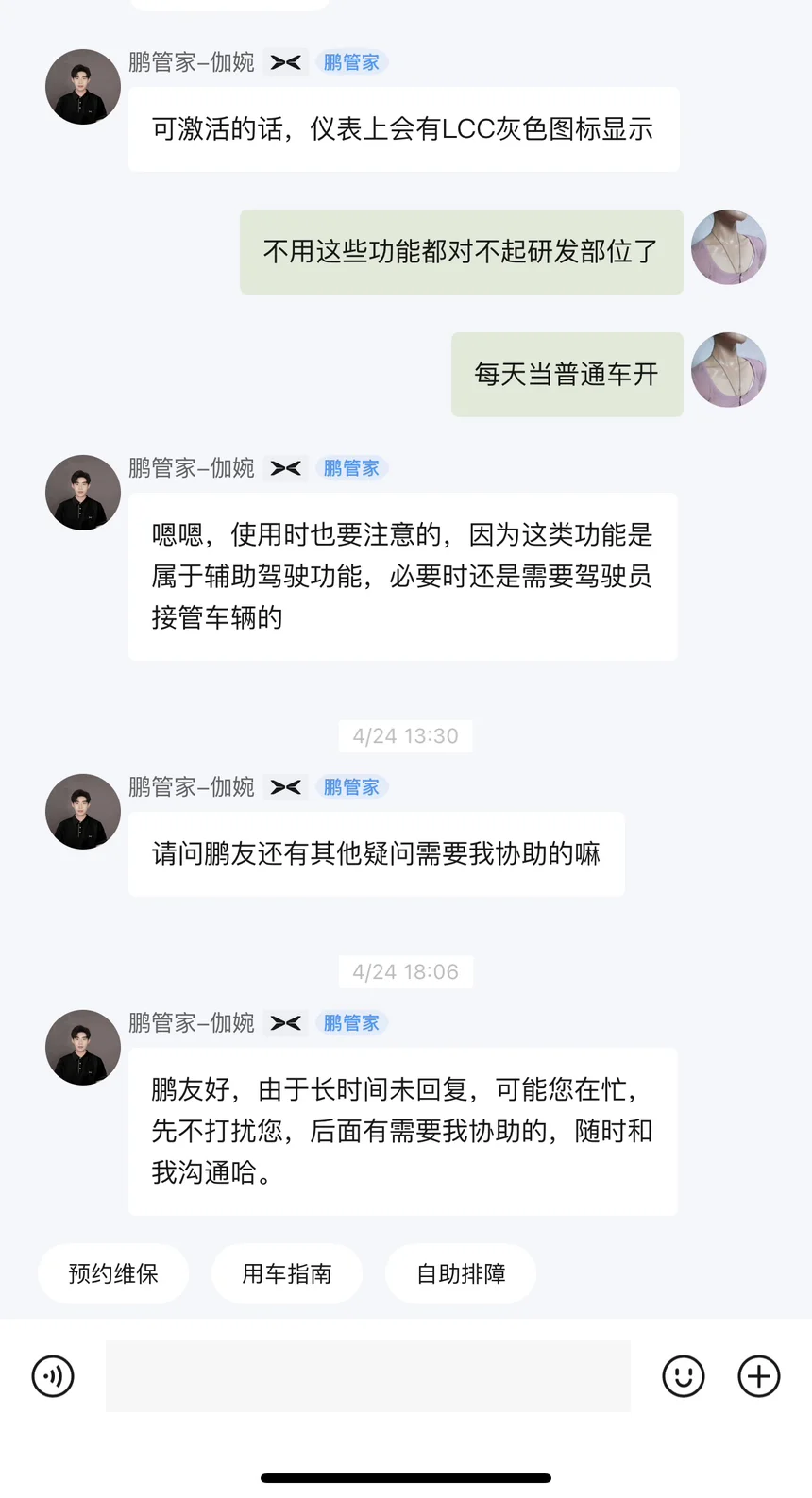 👍要夸夸 鹏管家-伽婉,真的很细心,回复速度快,之前听其他车主说提车后,就没有售后服务了,