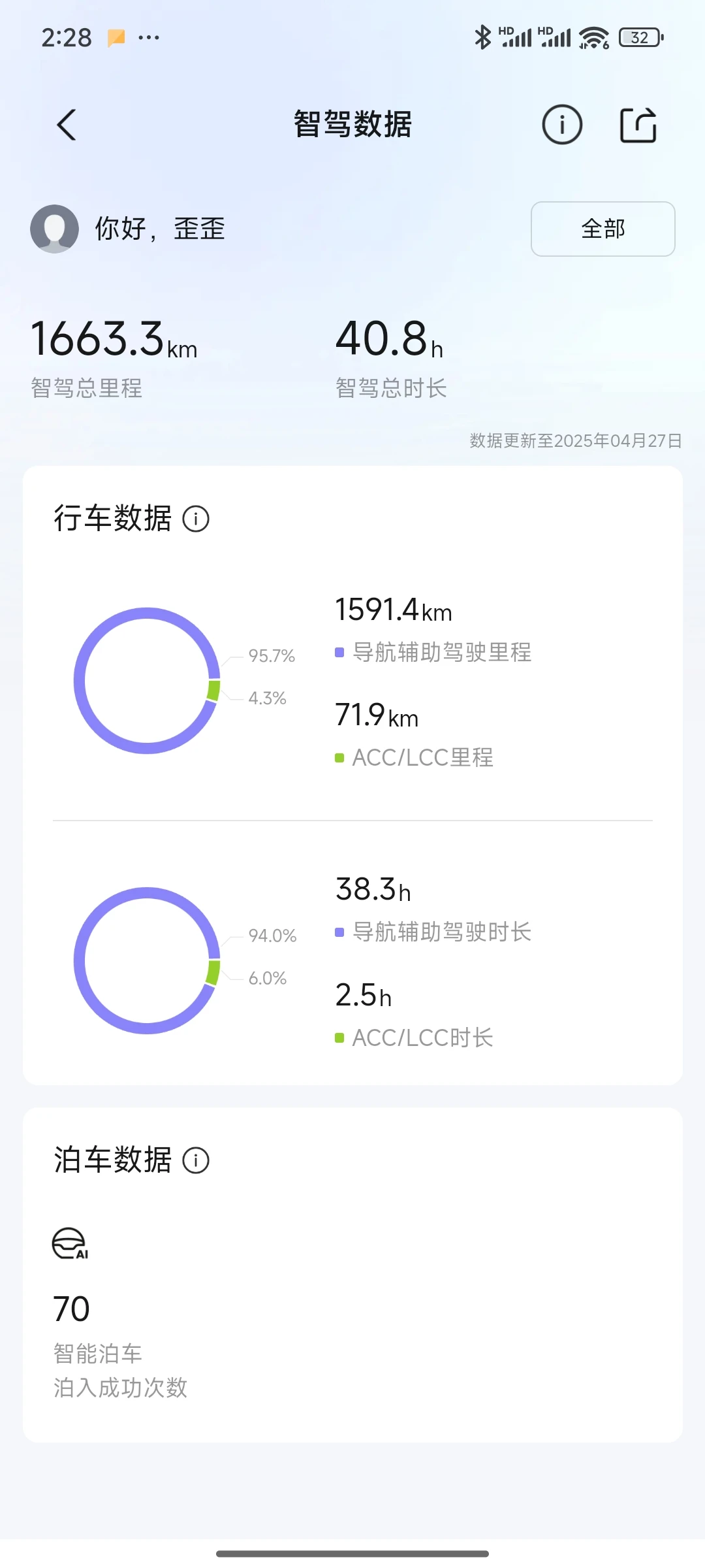1,智驾:我因为智驾换车,所以对于智驾有超级多话说,后面会单独发一篇文章。现在先大概说说。现在的智驾=90%智能+10%智障。我的智驾率接近90%,基本上能用智驾的情况我都会开。但是一般在高速匝道,修路路段,人多车多路段,我会随时接管。所以,对于我来说,它可以节省我90%的开车精力,我觉得很值得,也够用了。我不指望它能完全取代我开车,也不会把自己的生命交给一台机器。
