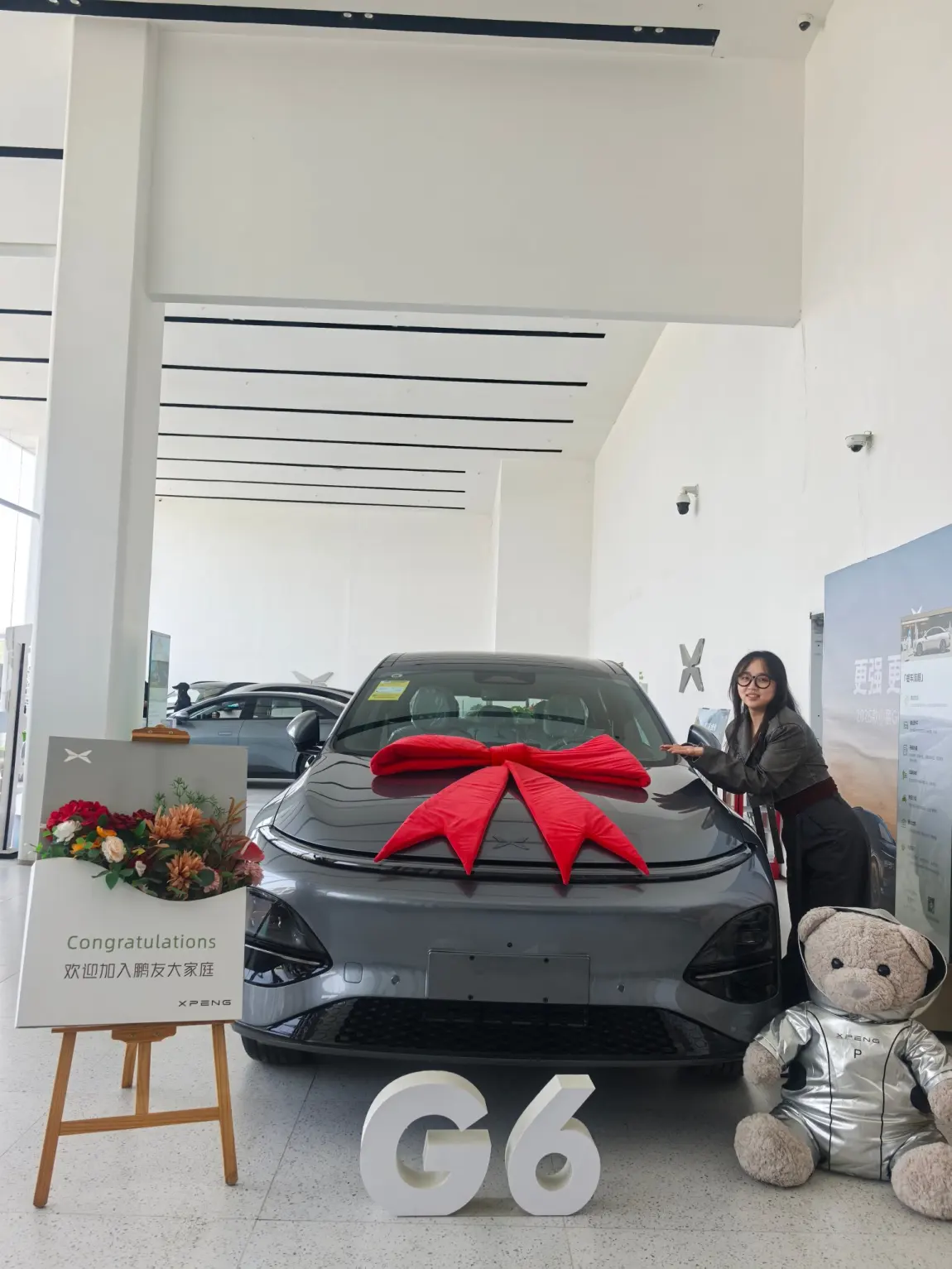 一旦买车的想法开始有,就会疯狂席卷,我看了不少车。比亚迪宋L外观还行,但是比亚迪品牌本身有点;极氪001操控不错,内饰质感也挺好,但是价格超出预算。特斯拉Model Y虽然品牌知名度高,但是也好贵。身边有很多朋友开小鹏mo3或者p7+,而且全是好评,就开始关注小鹏。碰巧g6发布会,就买他买他!XNGP智驾全国领先,城市里启动车辆、设置目的地,它就能自己穿梭大街小巷,应对各种路况,真的太方便了。搭配5C超充电池,充电10分钟,续航增加450公里,简直是“充电焦虑症”的救星。 交付当天,仪式感满满。交付专员热情又专业,在和爱车合影留念之后,交付专员还帮我录制了交付vlog,记录下这一高光时刻。 提车后的日子,惊喜不断。有一次着急出门,电量不多,用5C充电,短短十几分钟,电量就从10%充到了80%,完美赶上约会。智驾功能也帮了大忙,上高速开启智能辅助驾驶,自动跟车、变道,开长途轻松多了。车内空间宽敞舒适,周末带家人出去玩,老人孩子都能自在舒展。 小鹏G6,不仅是一辆车,更是我生活中的好伙伴,未来的日子,期待和它一起解锁更多精彩!