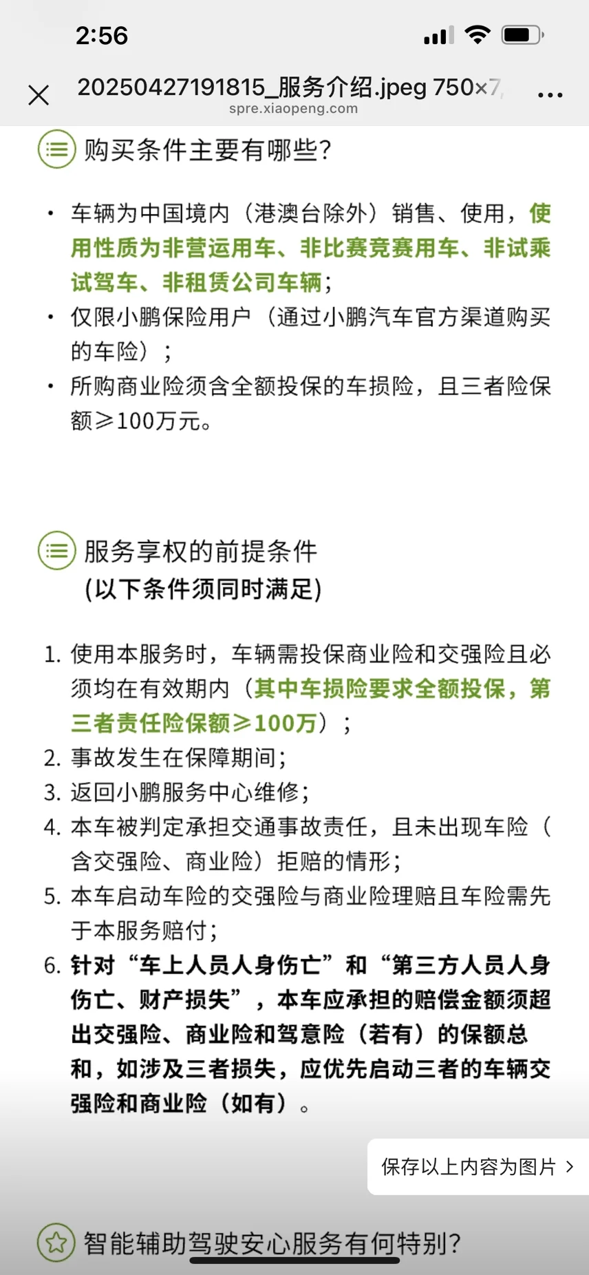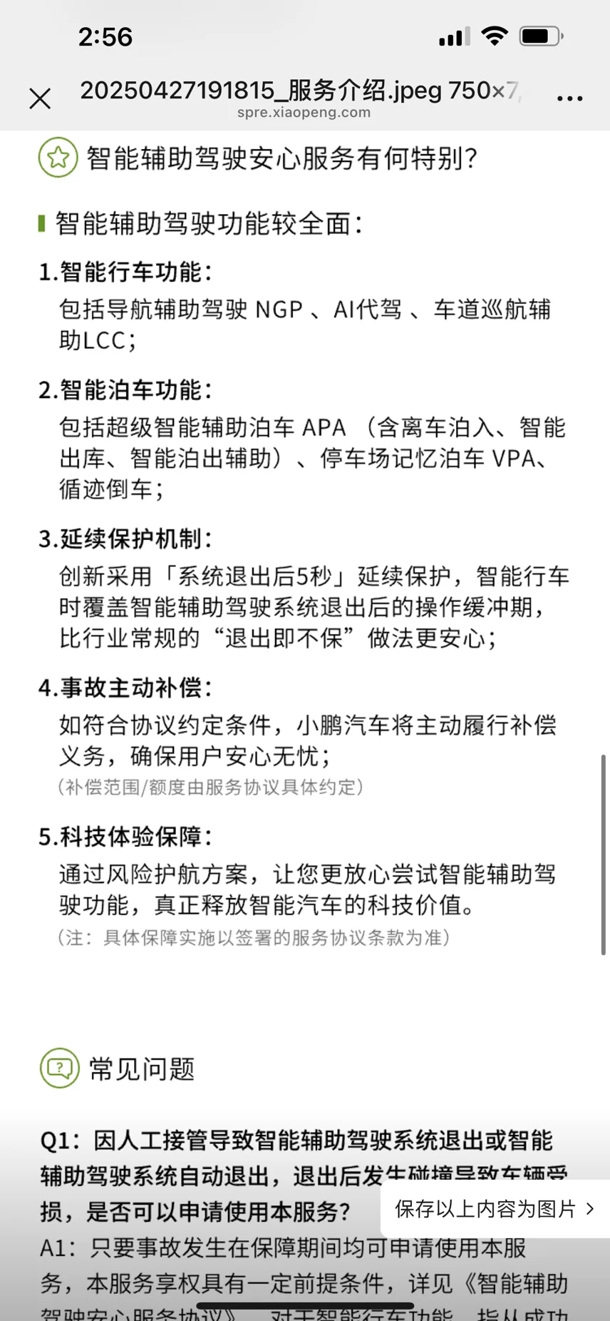 小鹏汽车昨天推出了智能辅助驾驶安全服务,保障范围很凡是智驾的场景都会覆盖且不限次。最亮眼的地方是智驾功能退出后的5秒都在保障范围。率先和国内头部5家保司合作这非只要和车险的主险随同购买即可,只需239元一年。理赔也很简单,详细见上图。虽然小鹏在智驾方面的技术处于市场第一梯队,这次推出了智能辅助驾驶安全服务也给实用智能辅助驾驶的用户多一重保障,但小鹏在工信部智驾安全新要求上也走在了前面,小鹏率先推出“新手考试”,提升了用户对智能辅助驾驶的安全教育认知。不会盲目依赖智能辅助驾驶功能。做到驾车出行随时观察路况不分神,明白智能辅助驾驶功能只是辅助驾驶而非自动驾驶。唯有像小鹏这样搞技术的一众企业不断技术攻坚,自动驾驶的那一天才会在合乎法规的情况下到来。#小鹏汽车[话题]#
