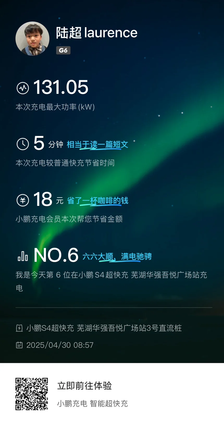 五一到了,先把电充满,放假之前心情是最激动的。到小鹏超充,体验既插即充,充电飞速,搭配充电卡充点券使用,费用也很经济!