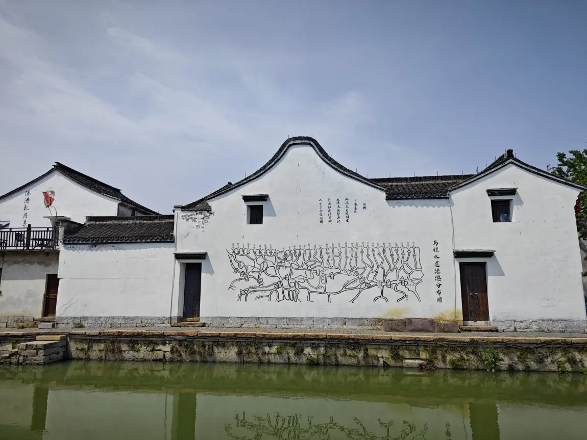 2、义皋村:这是在沿着环太湖路去往湖州的半途,偶然发现的小村落,它给人的第一印象就是安静和干净。也没想到这里竟然也是世界灌溉工程遗产的所在地,溇港圩田体系相当震撼,引入太湖水、把涂泥变为了沃土。村口的咖啡店、铜镜博物馆、非遗印刷体验馆、兴善寺等都完美融入在一起,激起了对慢生活的向往😍