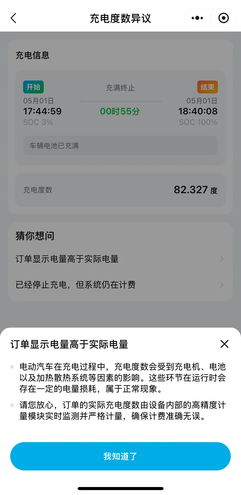 特来电也太黑了,p7+超长续航的电池一共才多少度电,充电完成显示82.327度。