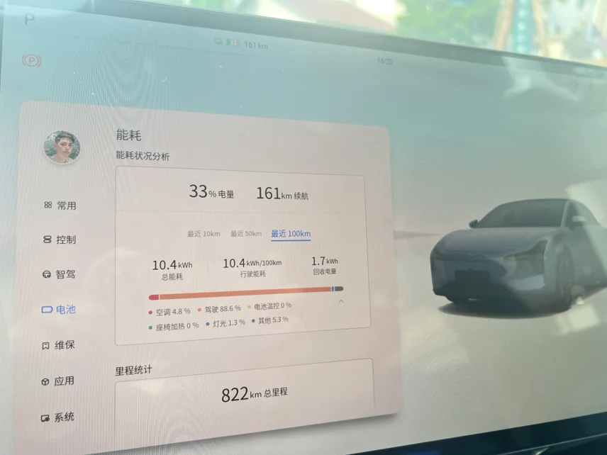 从东莞东城出发,100%电量🔋,显示续航496公里,高速堵车有点严重,全程空调25度,多数跑100-110码~到赣州信丰终点,33%电量🔋,显示续航161公里,总路程大概380公里,中间服务站停了一次休息,电耗还不错~