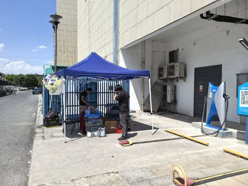 #风景在窗外流动,小鹏在身后同行# 从南京出发堵了4个多小时才到杭州,最老款的P7电控依旧能打,全程跑出14.5的电耗。堵到了饭点便索性下高速吃饭休息+充电。得益于鹏子近期充电网络建设飞速,顺路就有自营站,补能十分便捷,结果恰巧遇到杭州嘉凯城充电站的活动@充电小助手 。小哥很贴心的送上矿泉水,帮忙加玻璃水校准胎压。热情的服务让同行小伙伴成功吃下安利,考虑入手p7+